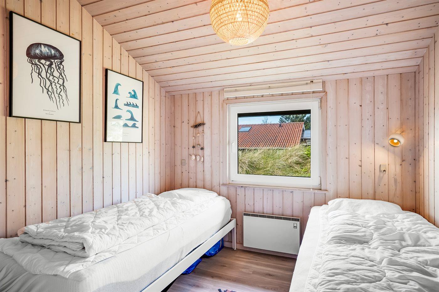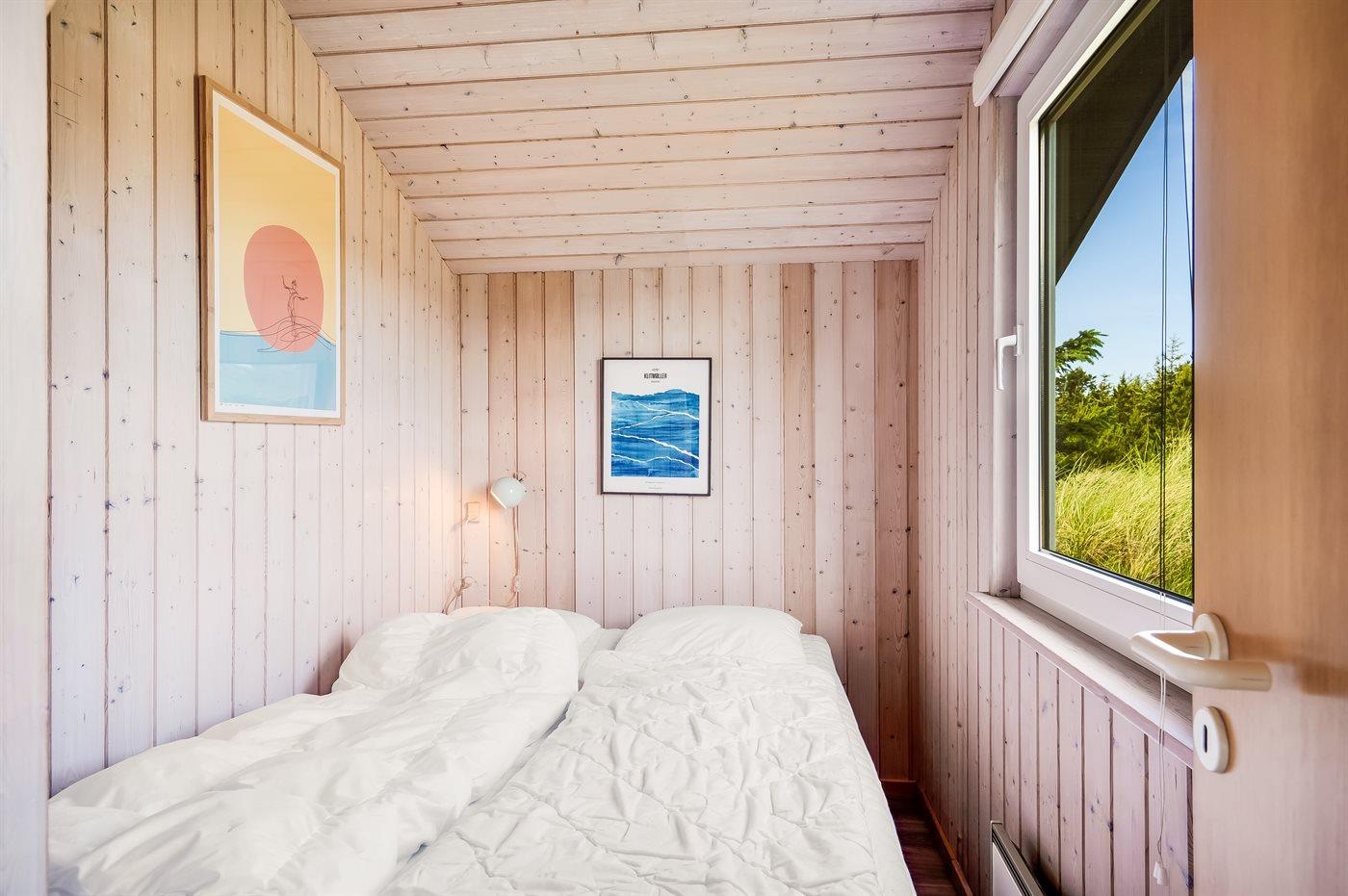 Der er i alt 3 soveværelser. Sovepladserne fordeler sig på: 4 sovepladser i dobbeltsenge. 2 sovepladser i enkeltsenge. 2 sovepladser i alkove.