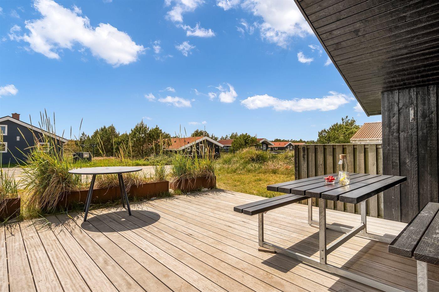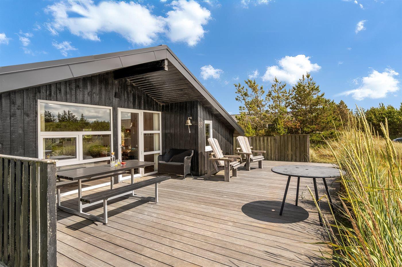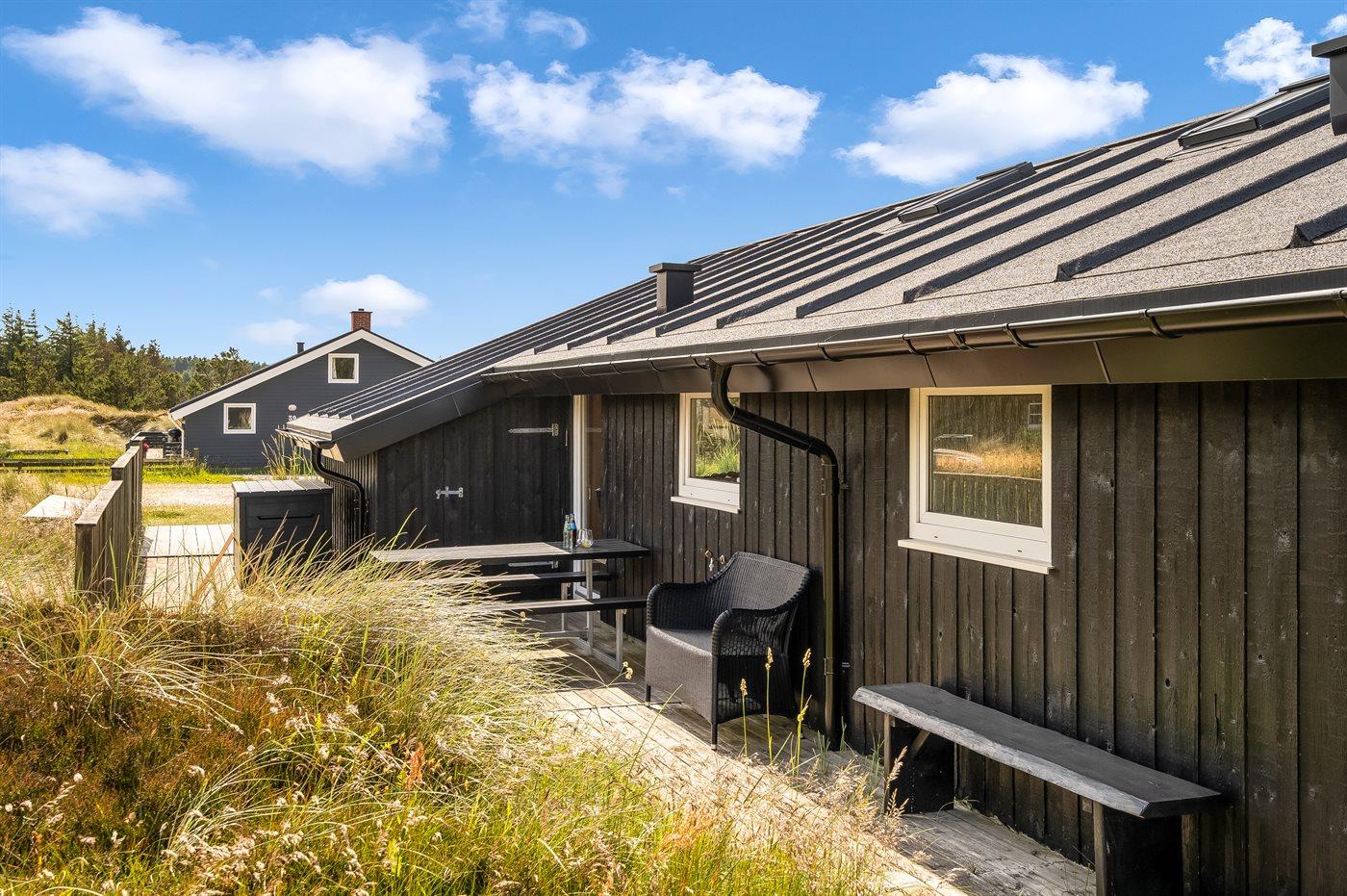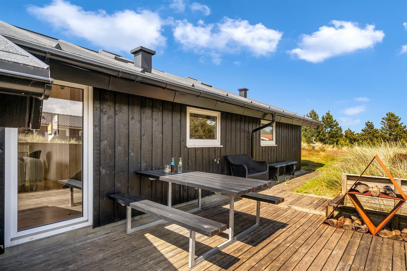 Moderne træhus i Klitmøller med sauna, terrasse og tæt på havet.