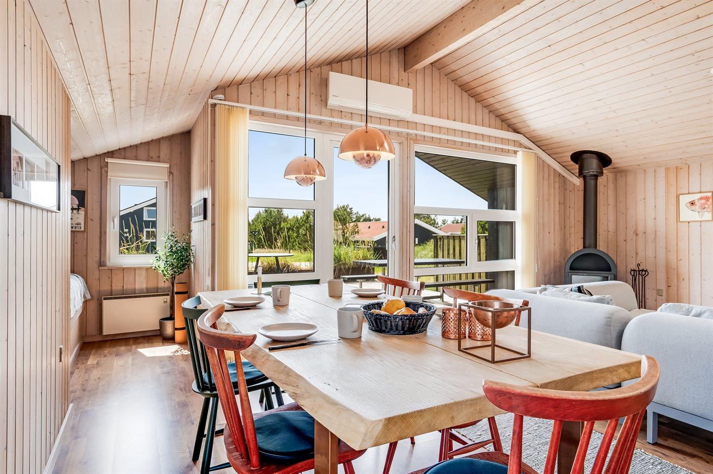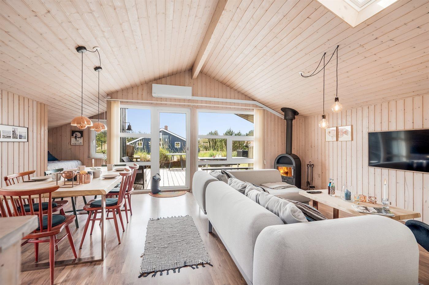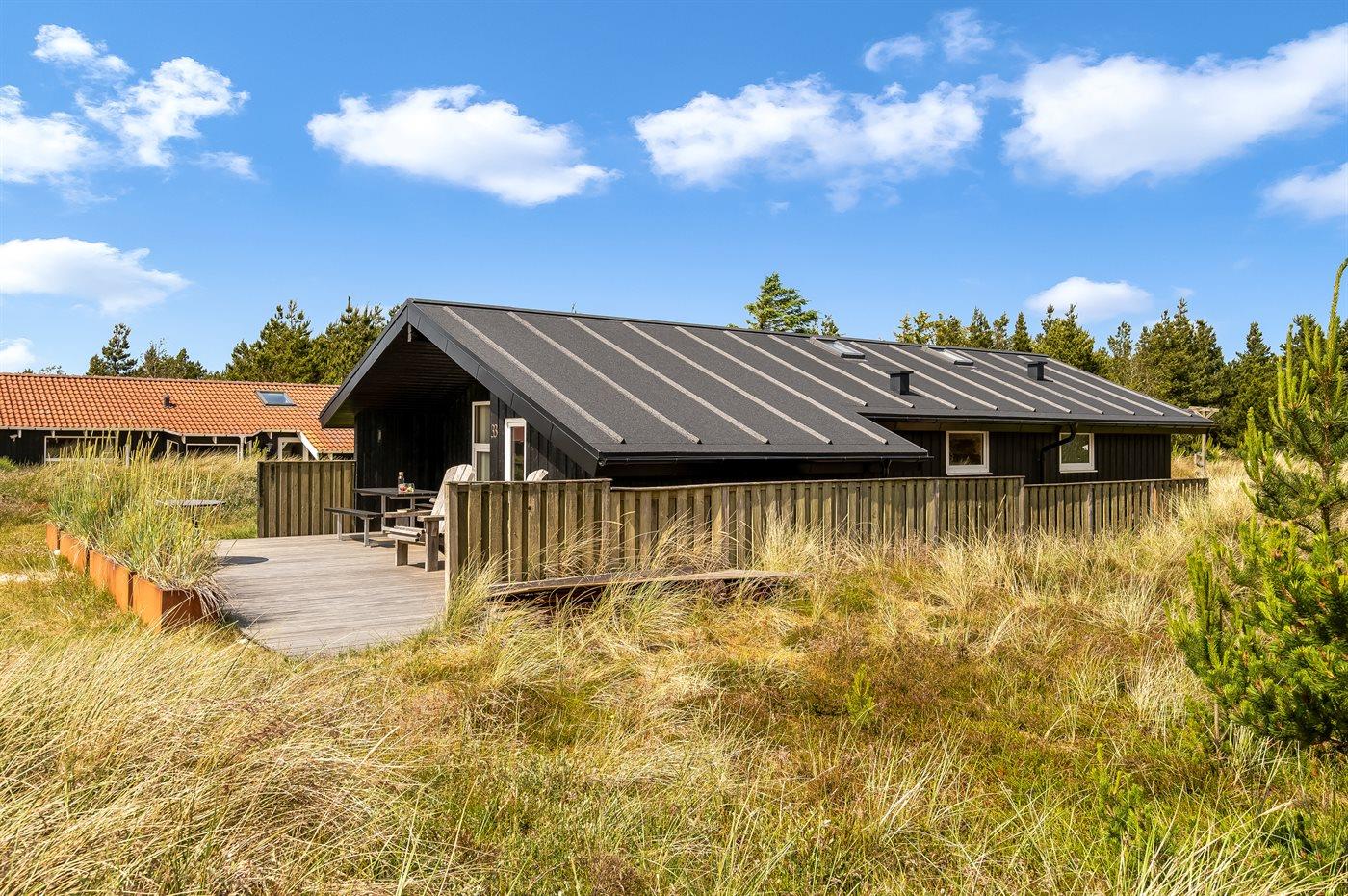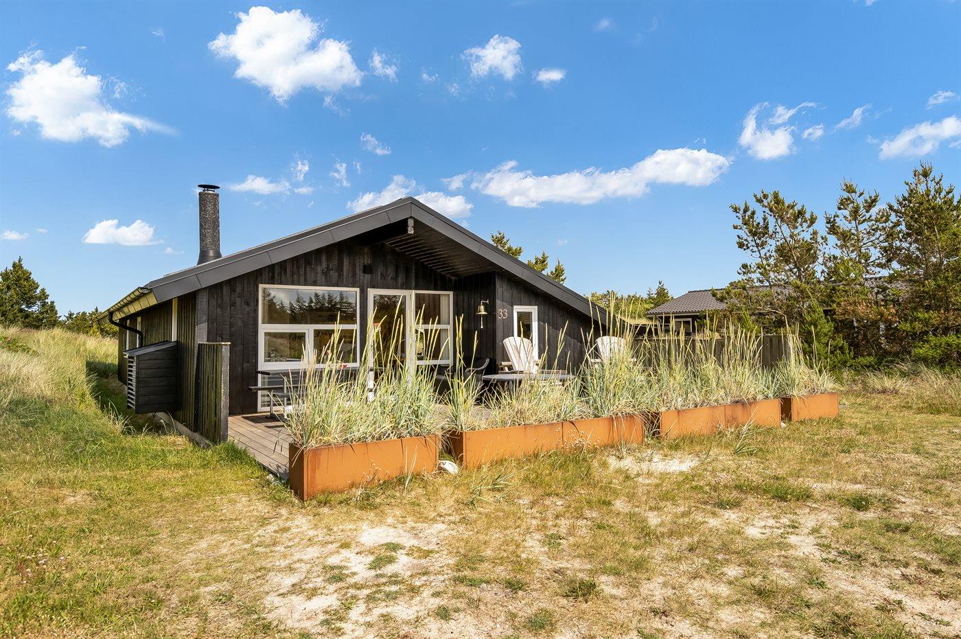 Moderne træhus i Klitmøller med sauna, terrasse og tæt på havet.