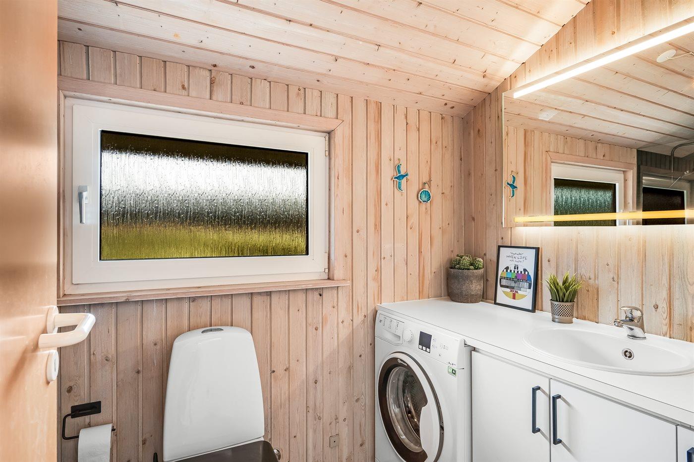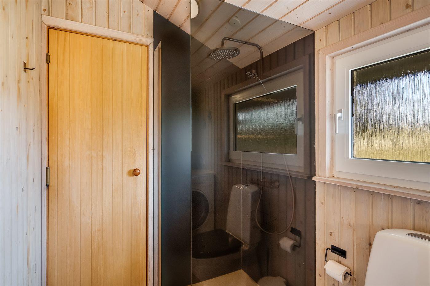 Der er 1 badeværelse med bruseniche og 1 toilet.. Der er gulvvarme på 1 badeværelse. I saunaen er der mulighed for afslapning.