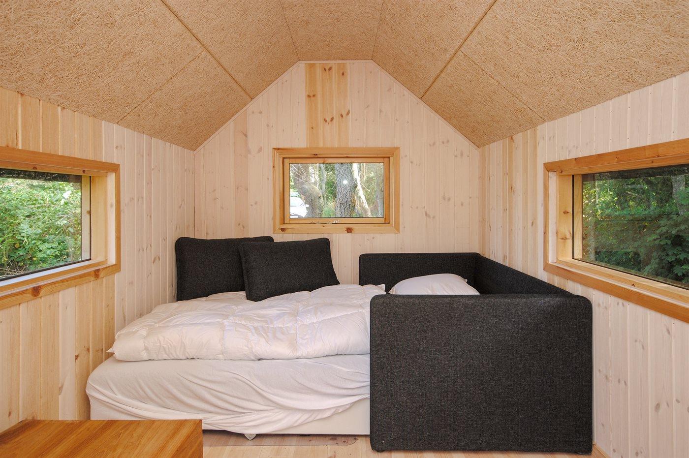 Der er i alt 3 soveværelser. Sovepladserne fordeler sig på: 4 sovepladser i dobbeltsenge. 2 sovepladser i enkeltsenge. 2 sovepladser i sovesofa (dobbelt). 2 sovepladser på madrasser. 2 af disse sovepladser befinder sig i et anneks og 2 af dem befinder sig på hemsen.