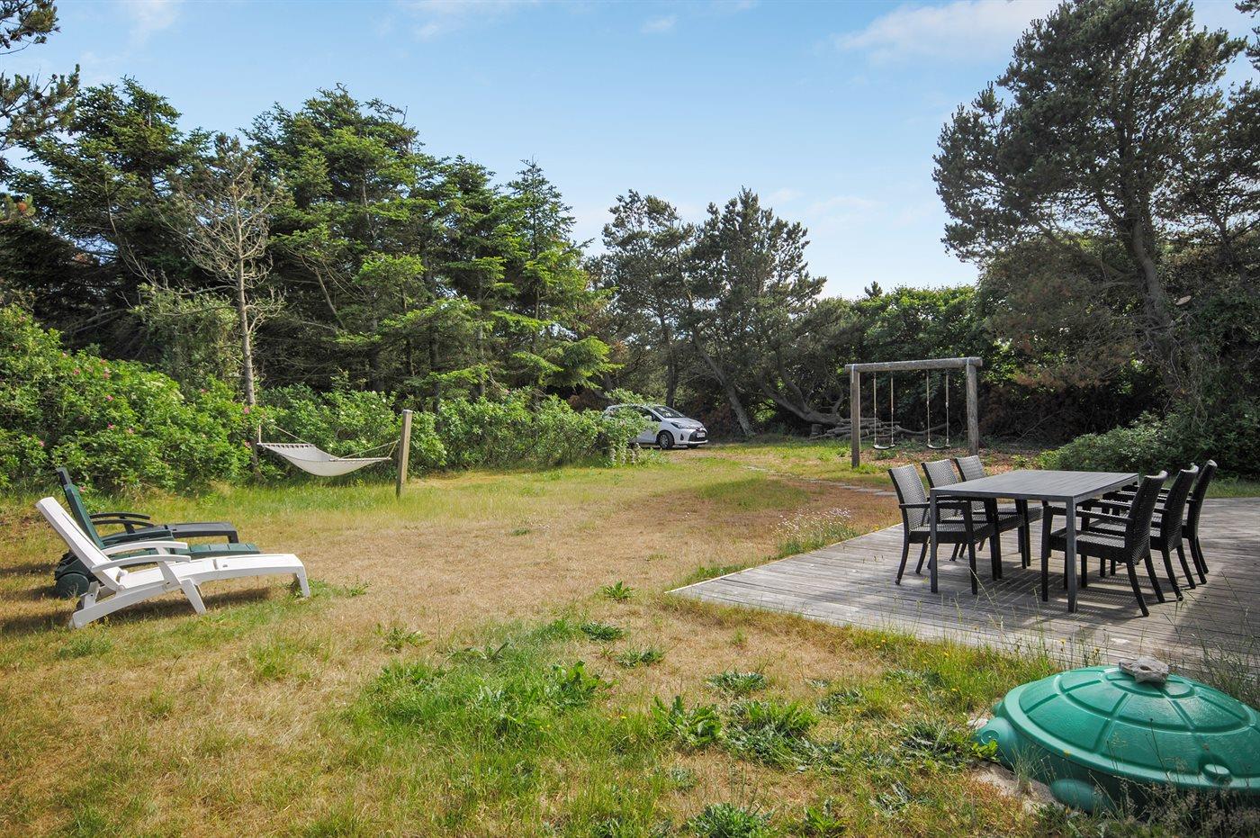 Ferieboligen er beliggende på en 1200 m² stor havegrund. Der er 400 m til havet. Nærmeste forretning er beliggende i en afstand af 900 m. Til ferieboligen hører 65 m² terrasseareal. Desuden er der 10 m² overdækket terrasse. Der er redskabsrum.