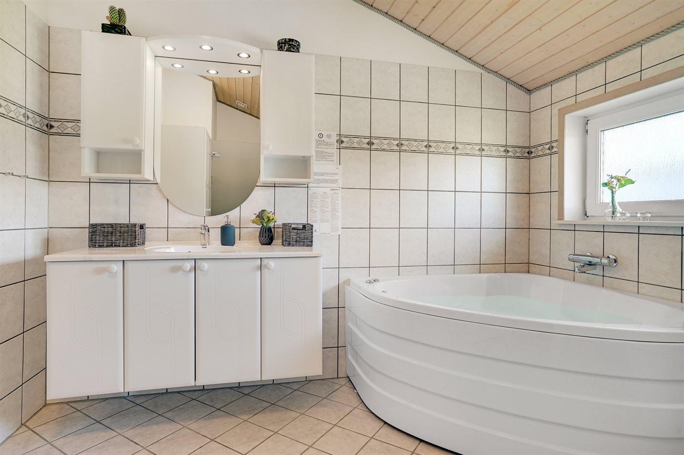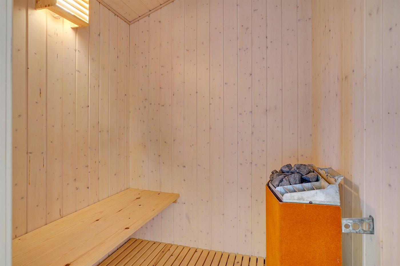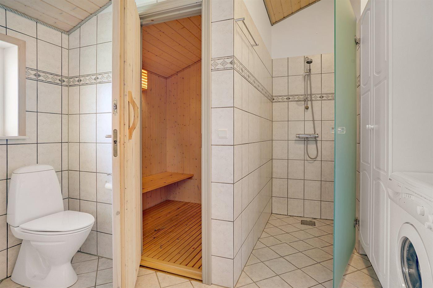 Der er 1 badeværelse med bruseniche og 1 toilet., heraf 1 gæstetoilet. Der er gulvvarme på 1 badeværelse. I saunaen er der mulighed for afslapning.