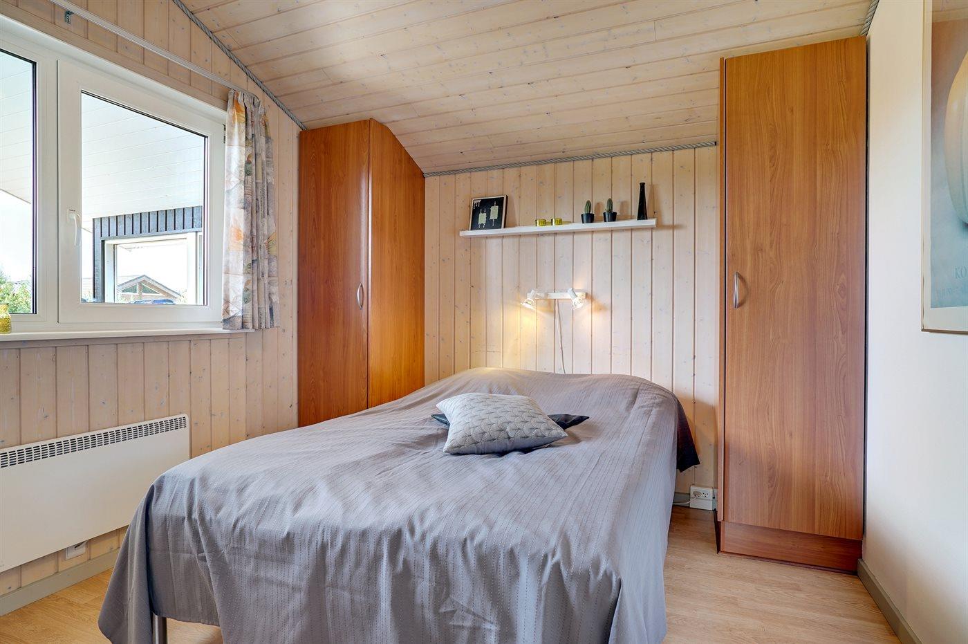 Der er i alt 4 soveværelser. Sovepladserne fordeler sig på: 4 sovepladser i dobbeltsenge. 3 sovepladser i enkeltsenge. 2 sovepladser i køjeseng.
