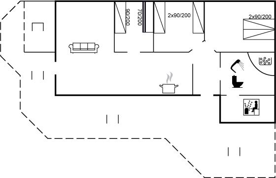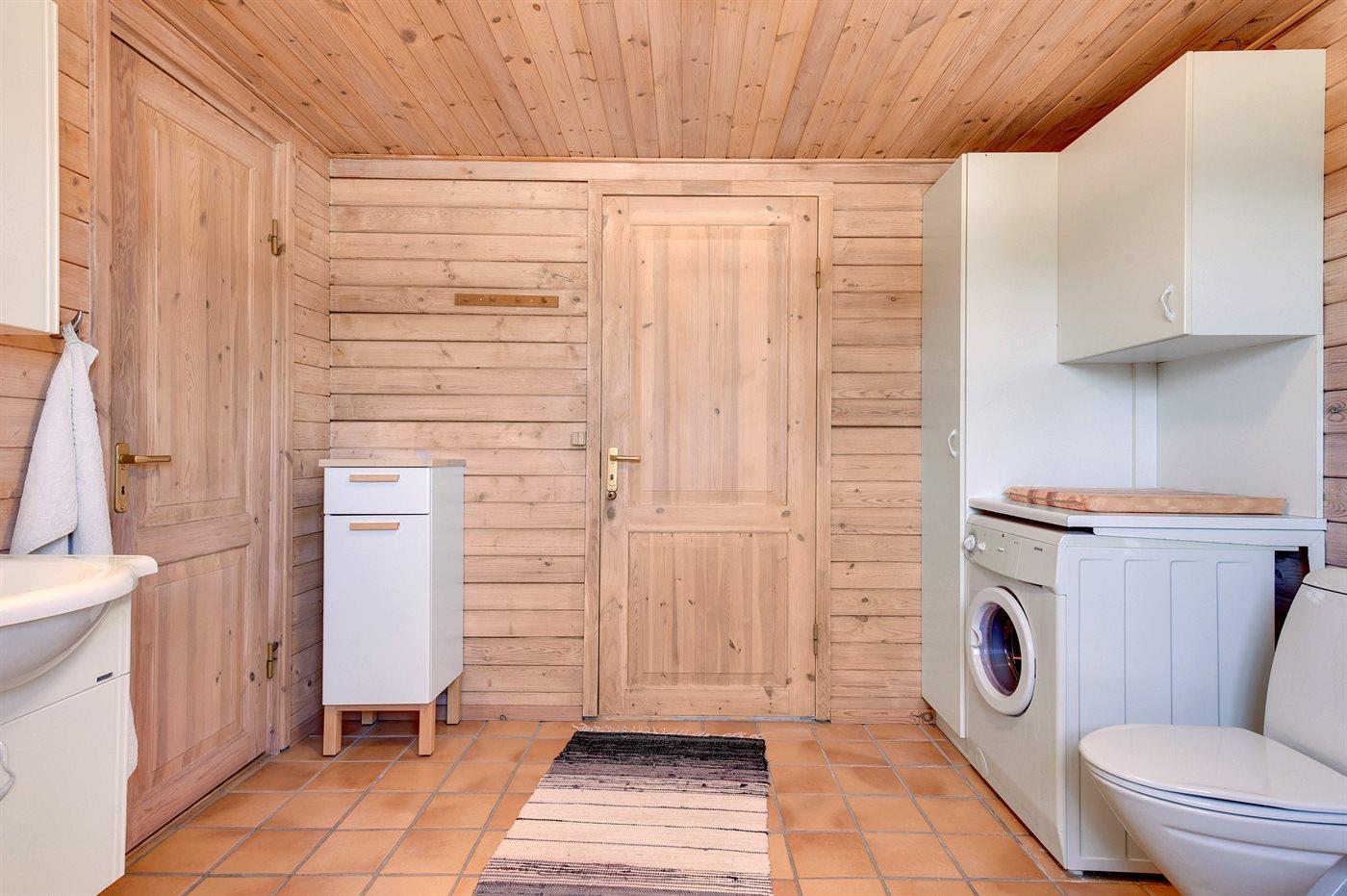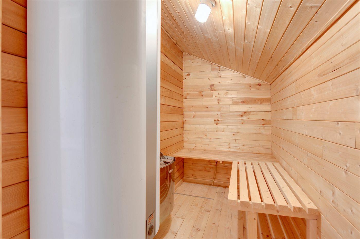 Der er 1 badeværelse med bruseniche og 1 toilet. I saunaen er der mulighed for afslapning.