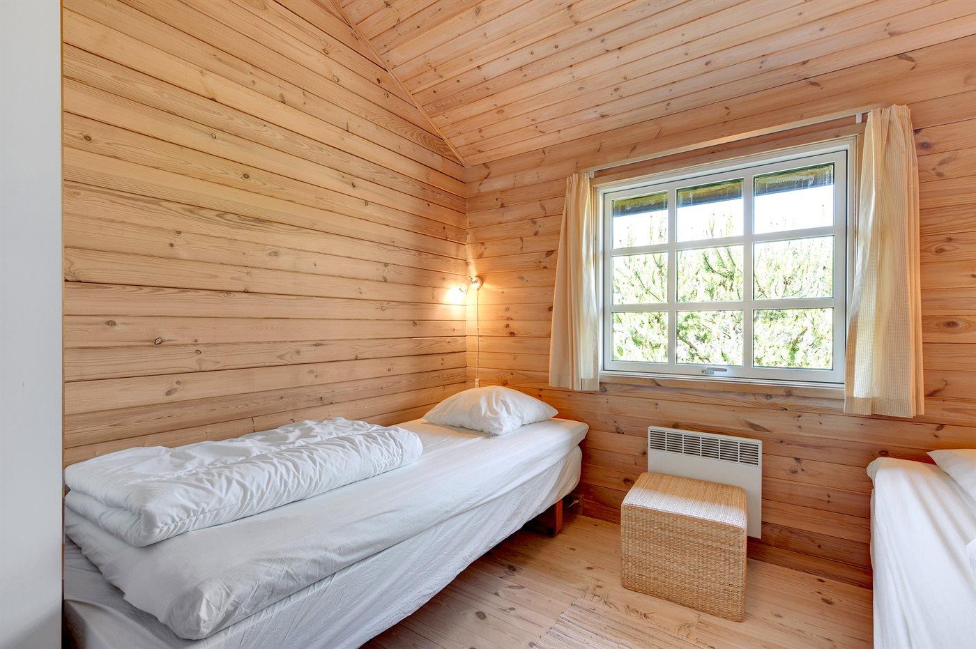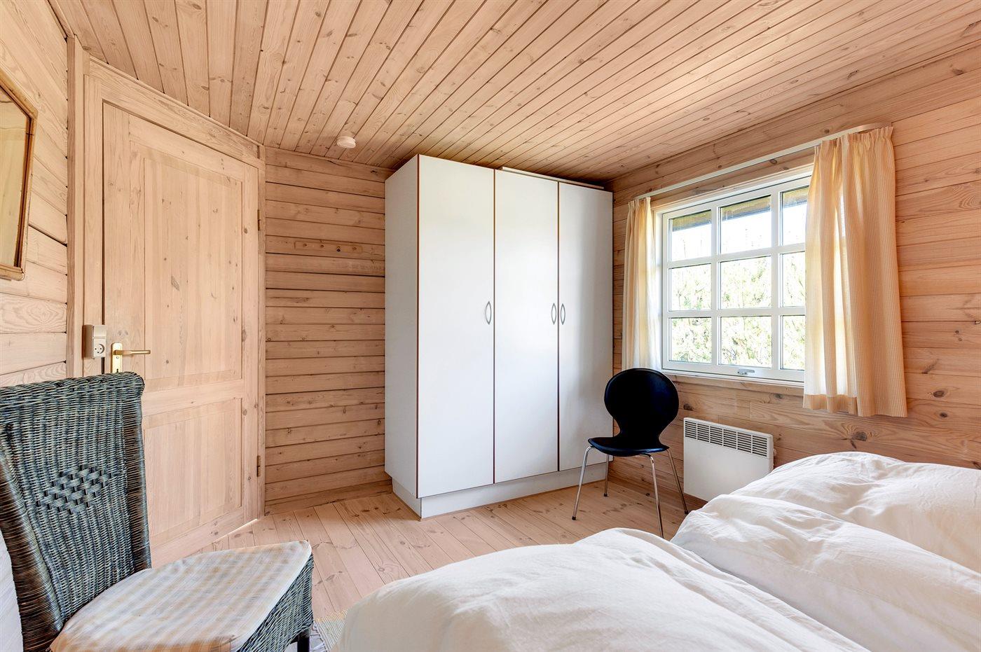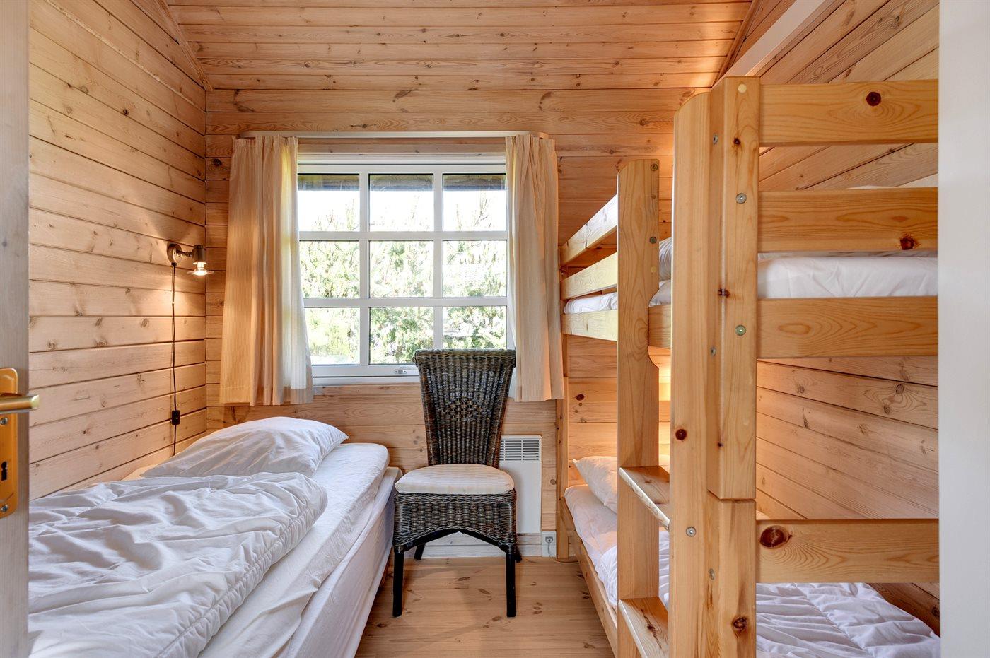 Der er i alt 3 soveværelser. Sovepladserne fordeler sig på: 2 sovepladser i dobbeltseng. 3 sovepladser i enkeltsenge. 2 sovepladser i køjeseng. 2 sovepladser på madrasser. 2 af disse sovepladser befinder sig på husets hems. Derudover er der 1 stk. barneseng.