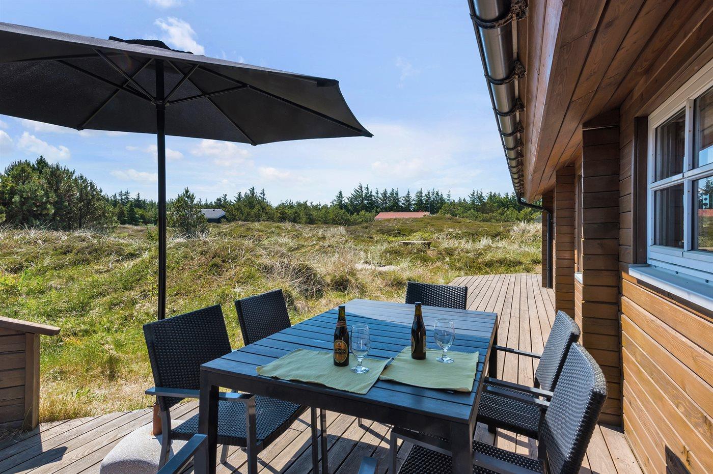 Hyggeligt bjælkehus i Klitmøller med sauna, spabad og naturgrund tæt på havet.