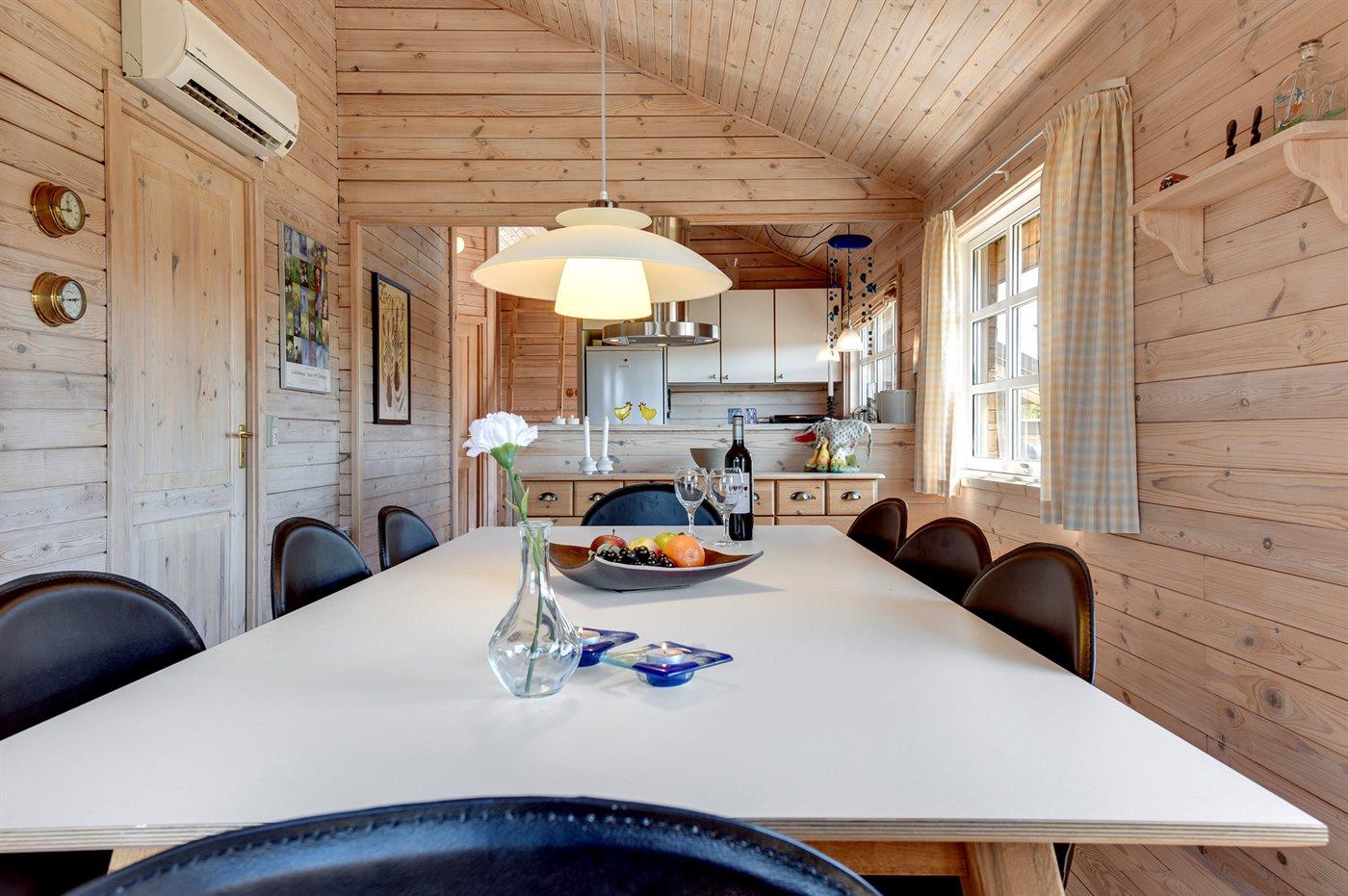 Sommerhuset egner sig til 7 personer. Ferieboligen er på 93 m² og er bygget i 2001. Det er ikke tilladt at medbringe husdyr. Ferieboligen er udstyret med energibesparende varmepumpe. Ferieboligen har vaskemaskine. Frysekapacitet på 40 liter. Der er desuden brændeovn. Til de små er der 1 stk. barnestol.