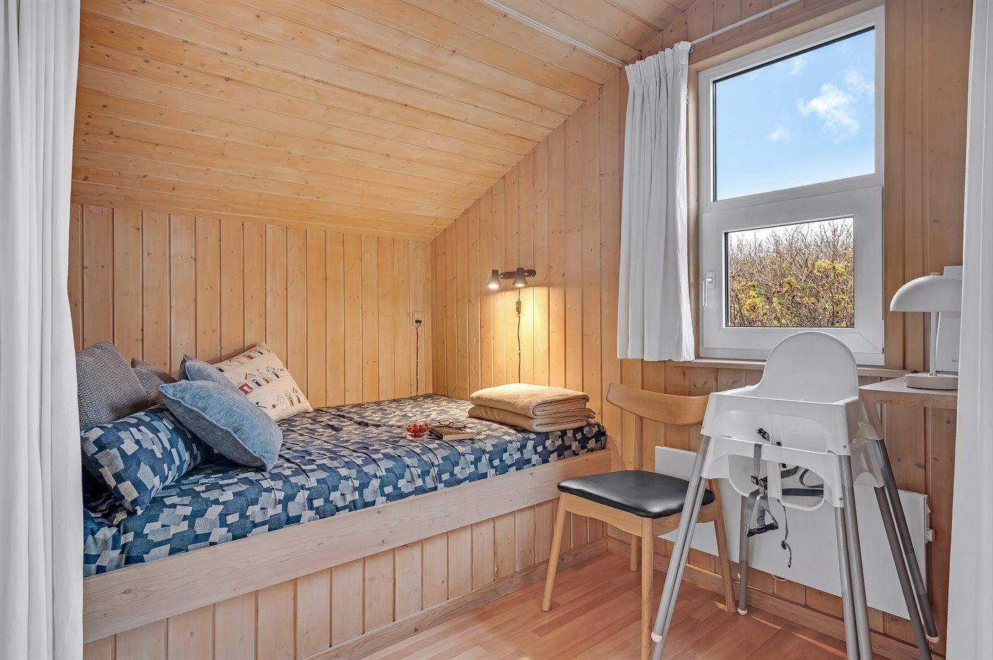 Der er i alt 3 soveværelser. Sovepladserne fordeler sig på: 4 sovepladser i dobbeltsenge. 2 sovepladser i enkeltsenge. 2 sovepladser i alkove. Derudover er der 1 stk. barneseng. 2 ekstra flytbare madrasser forefindes i huset (ikke ekstra sovepladser).