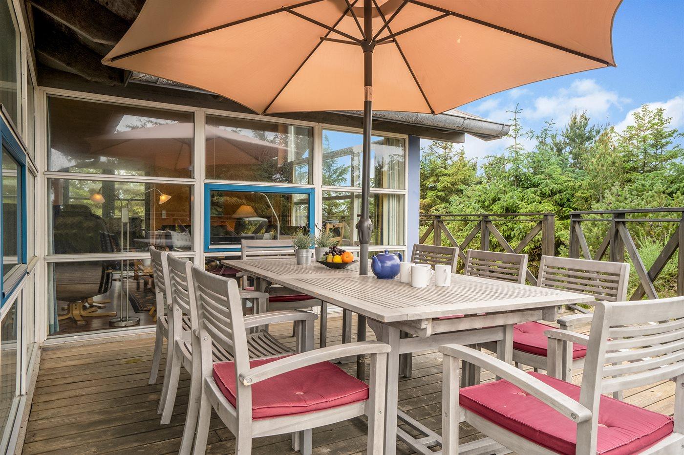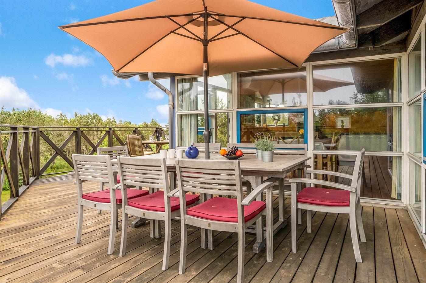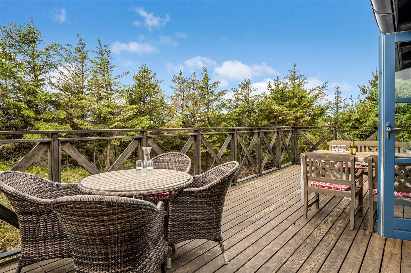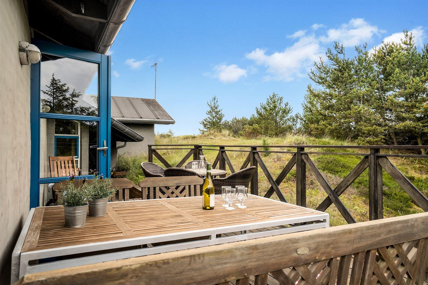 Ferieboligen er beliggende på en 2100 m² stor klitgrund. naturgrund. Der er 600 m til havet. Nærmeste forretning er beliggende i en afstand af 800 m. Til ferieboligen hører 85 m² terrasseareal. Grill til rådighed. Der er carport til rådighed. Parkering ved ferieboligen.