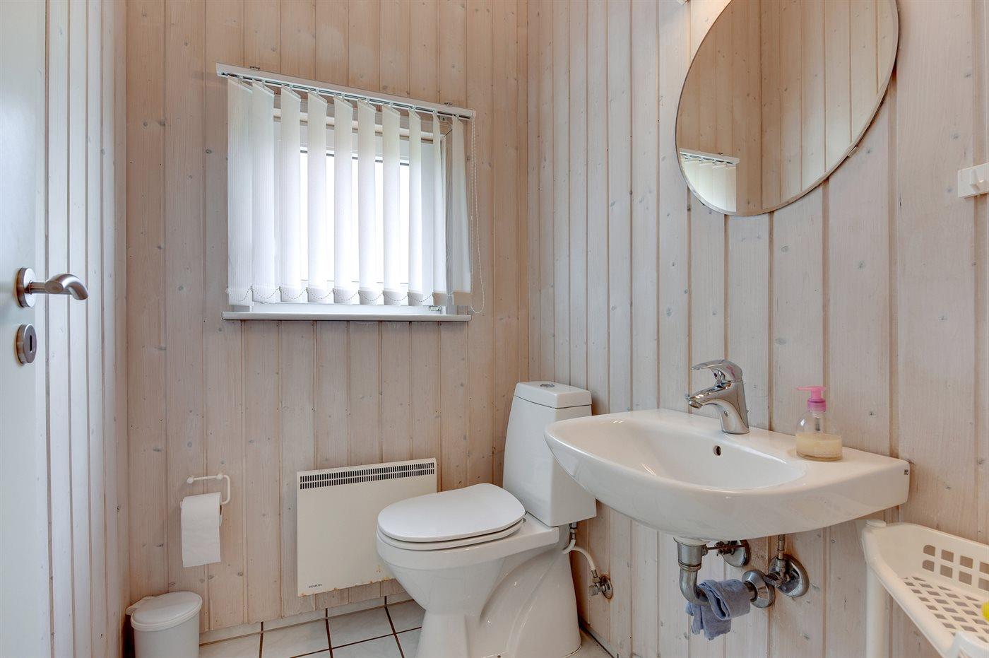Der er 1 badeværelse med bruseniche og 2 toiletter, heraf 1 gæstetoilet. Der er gulvvarme på 1 badeværelse. I saunaen er der mulighed for afslapning.
