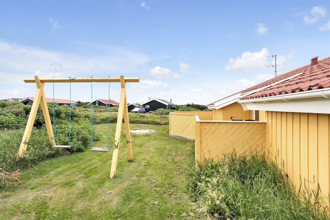 Ferieboligen er beliggende på en 1300 m² stor havegrund. Der er 200 m til havet. Nærmeste forretning er beliggende i en afstand af 1000 m. Til ferieboligen hører i alt 60 m² lukket terrasse. Heraf er 10 m² overdækket. Gynge. Sandkasse. Grill til rådighed. Parkering ved ferieboligen.