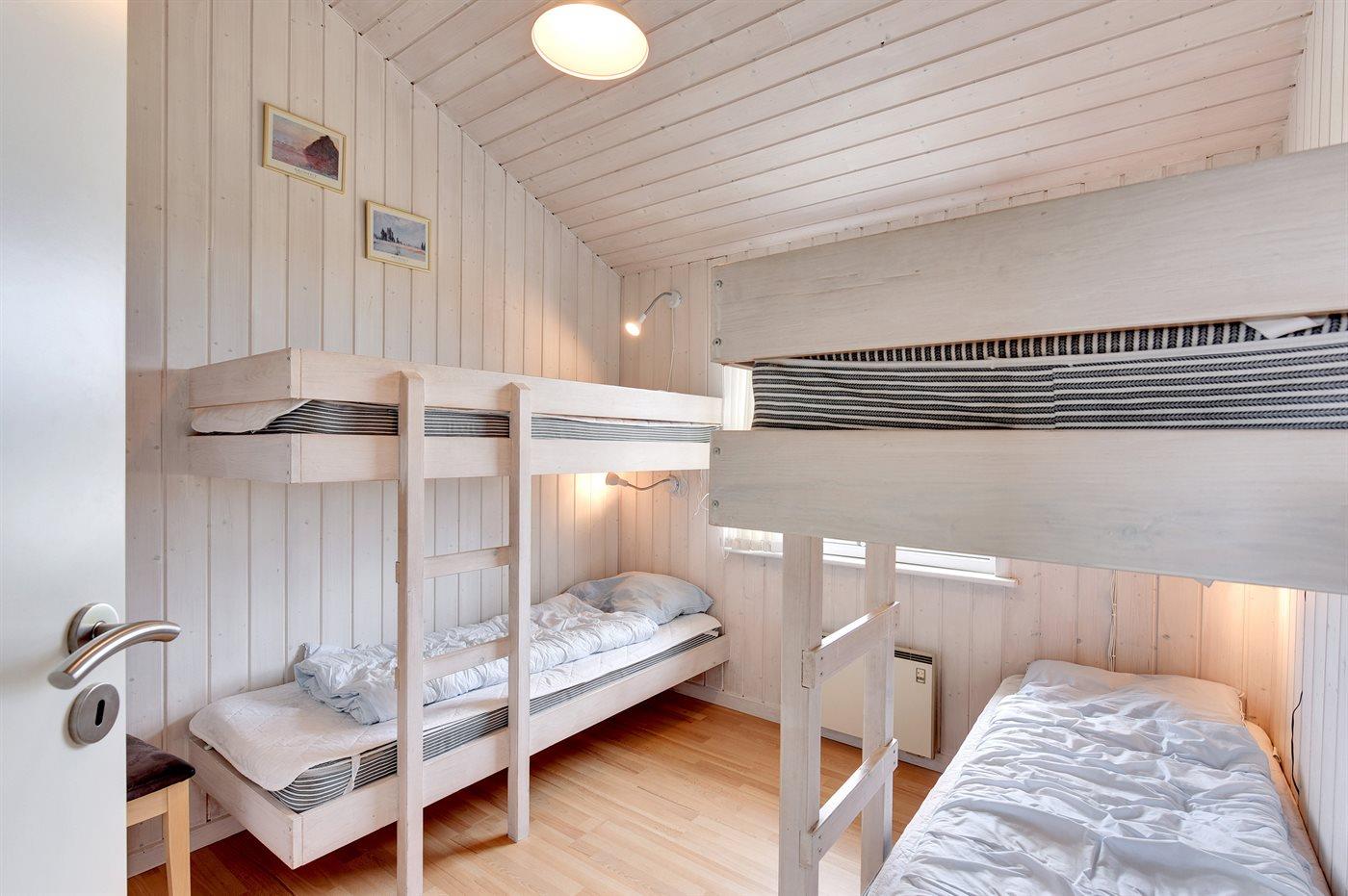 Der er i alt 3 soveværelser. Sovepladserne fordeler sig på: 4 sovepladser i dobbeltsenge. 4 sovepladser i køjesenge.
