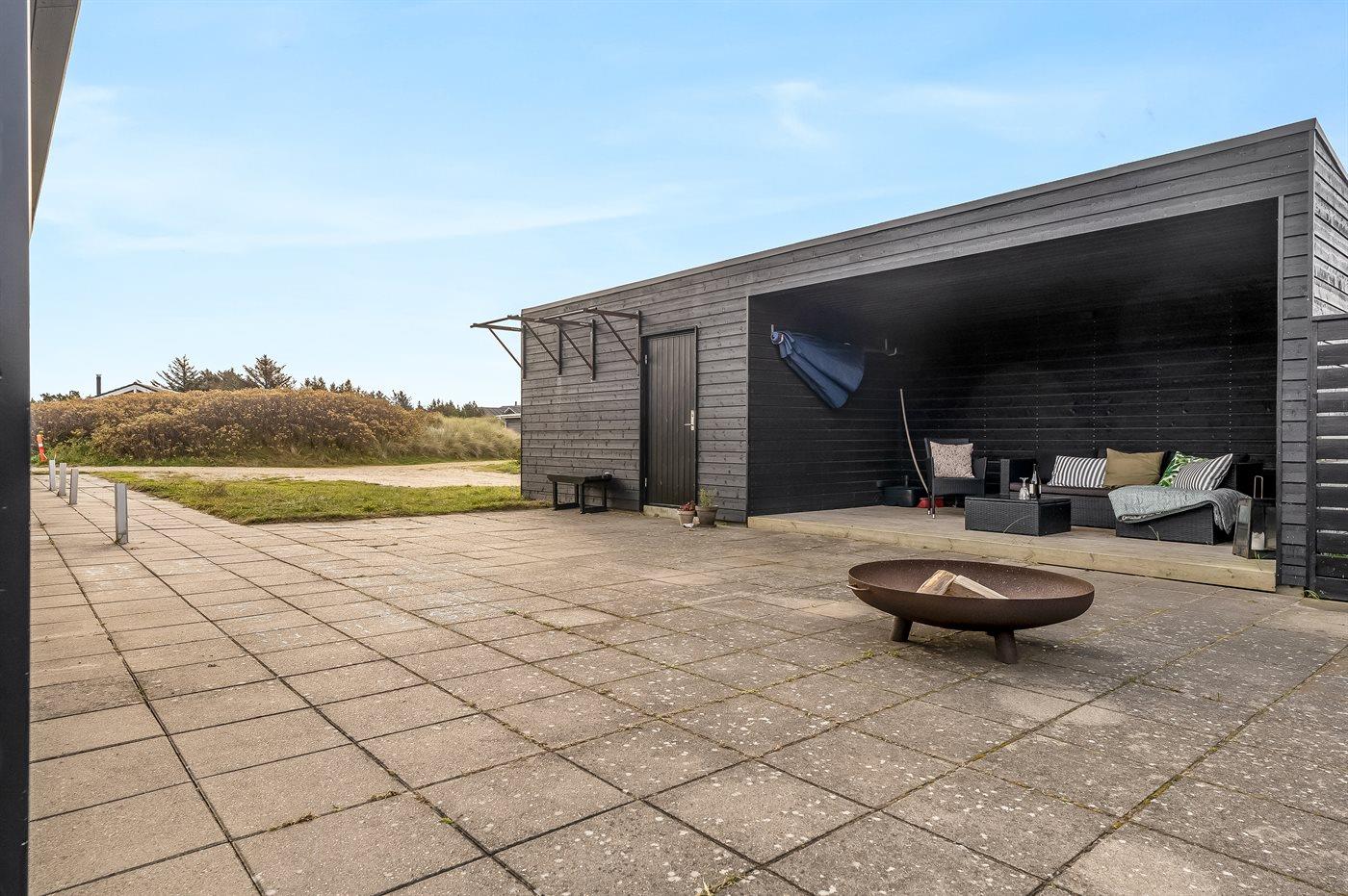 Ferieboligen er beliggende på en 1400 m² stor naturgrund. Der er 400 m til havet. Nærmeste forretning er beliggende i en afstand af 200 m. Til ferieboligen hører 139 m² terrasseareal. Desuden er der 12 m² overdækket terrasse. Der er installeret stik til opladning af elbil. Parkering ved ferieboligen.