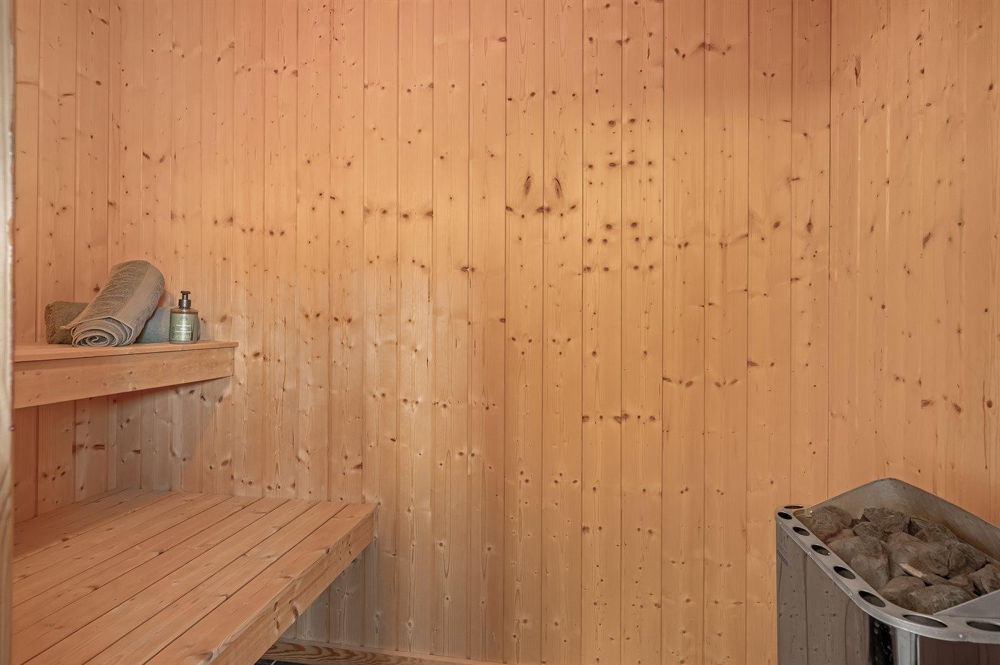 Der er 2 badeværelser med bruseniche og 2 toiletter. Der er gulvvarme på 2 badeværelser. I saunaen er der mulighed for afslapning.