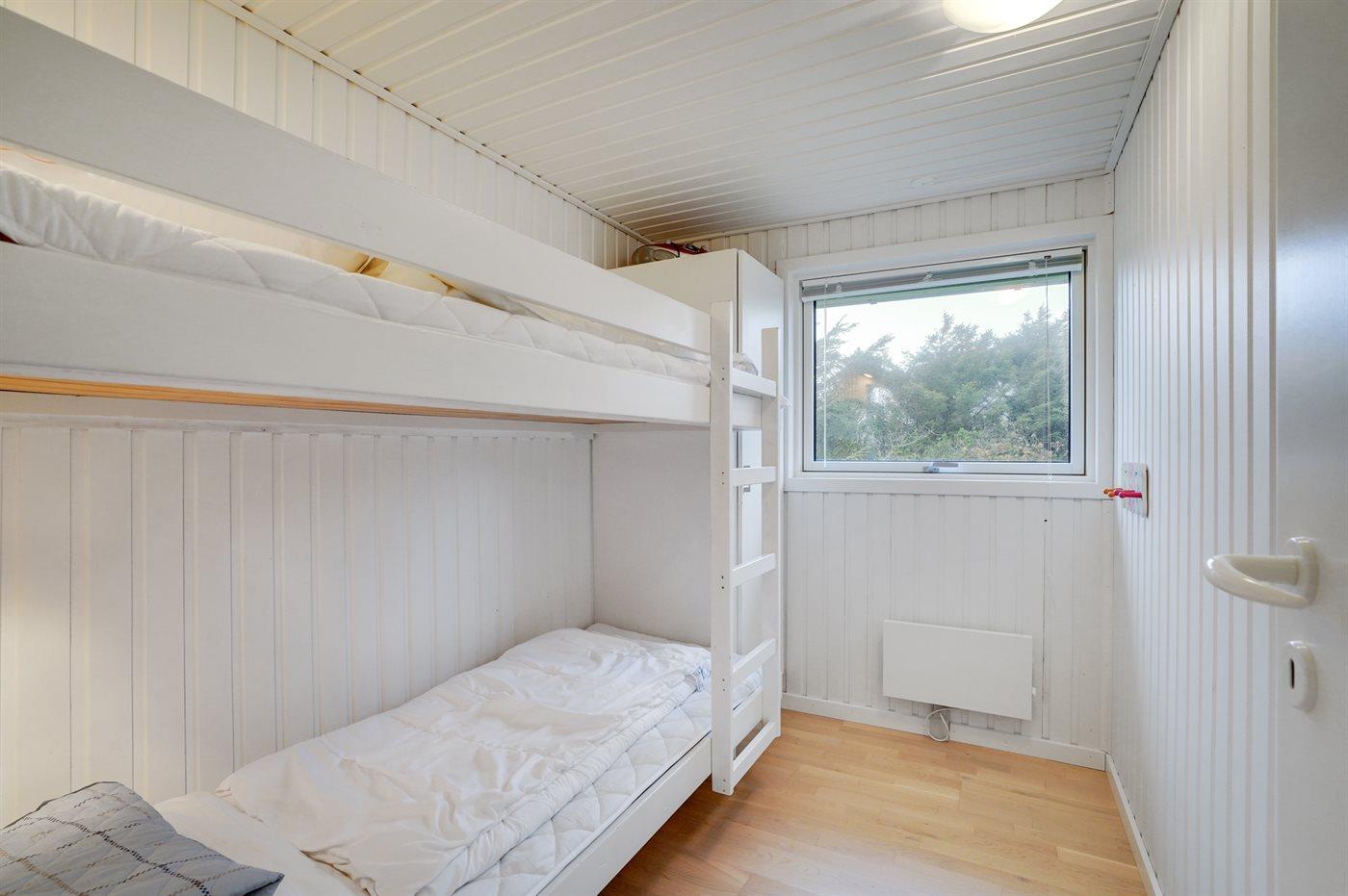 Der er i alt 3 soveværelser. Sovepladserne fordeler sig på: 2 sovepladser i dobbeltseng. 2 sovepladser i enkeltsenge. 2 sovepladser i køjeseng.