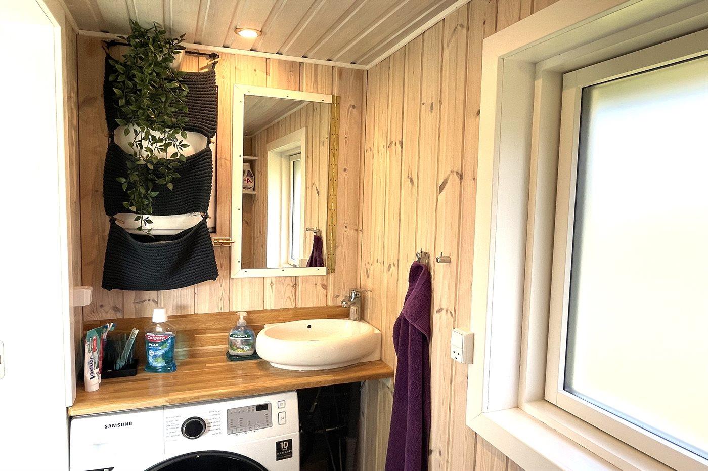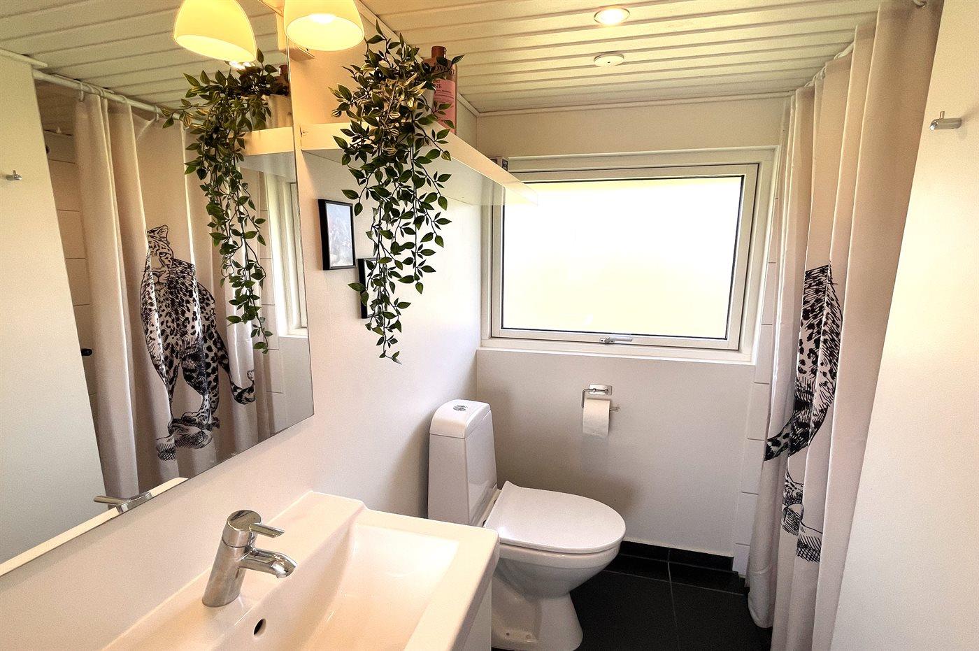Der er 1 badeværelse med bruseniche og 2 toiletter, heraf 1 gæstetoilet. Der er gulvvarme på 1 badeværelse. Der er gulvvarme på gæstetoilettet.