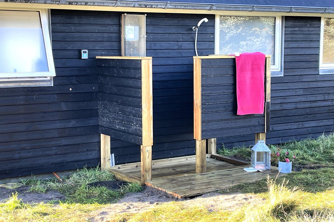 Ferieboligen er beliggende på en 4000 m² stor naturgrund. Der er 300 m til havet. Nærmeste forretning er beliggende i en afstand af 600 m. Til ferieboligen hører 50 m² terrasseareal. Der er redskabsrum. Parkering ved ferieboligen.