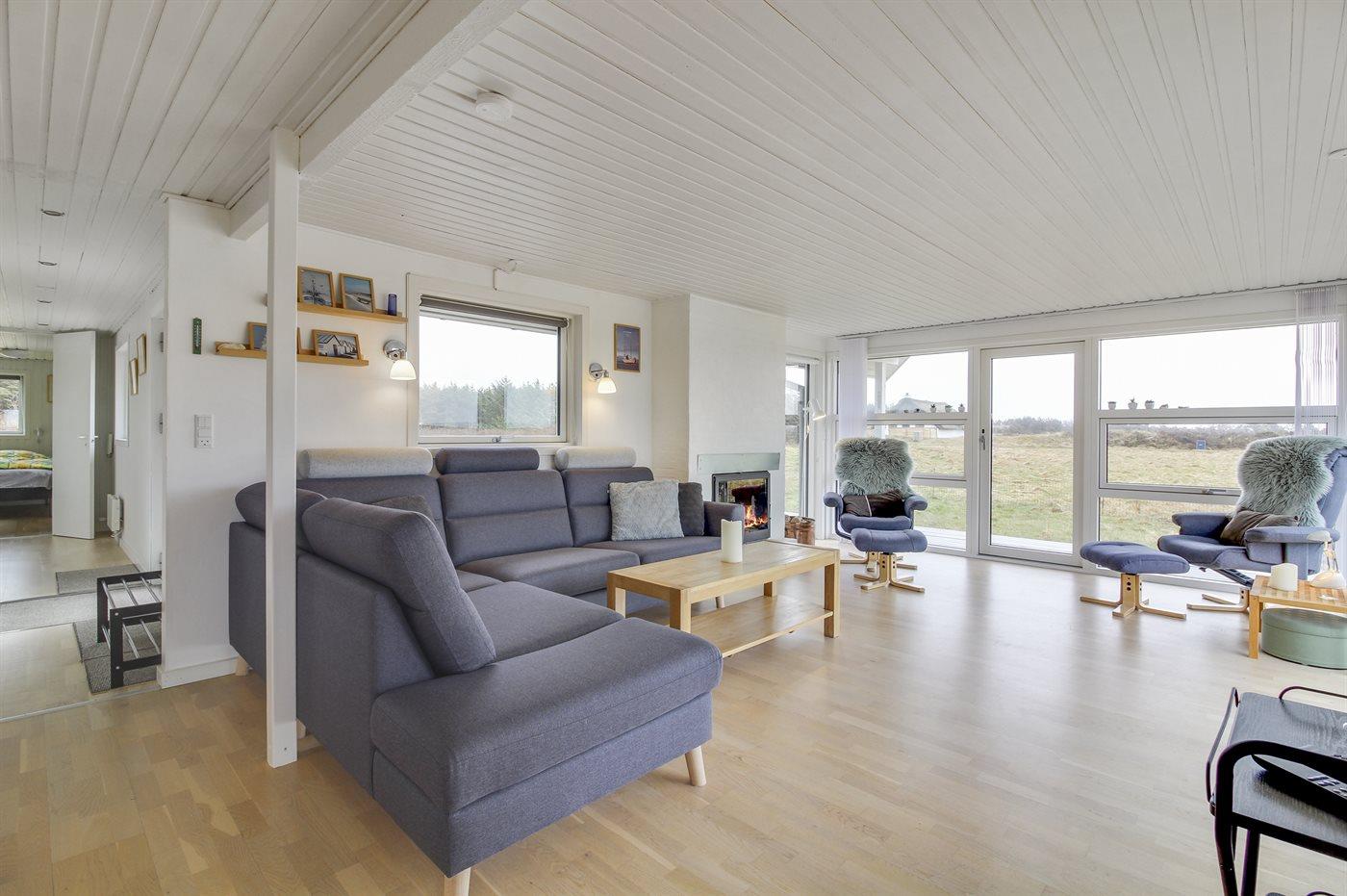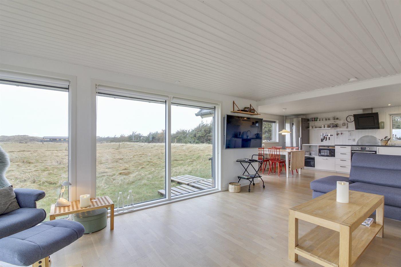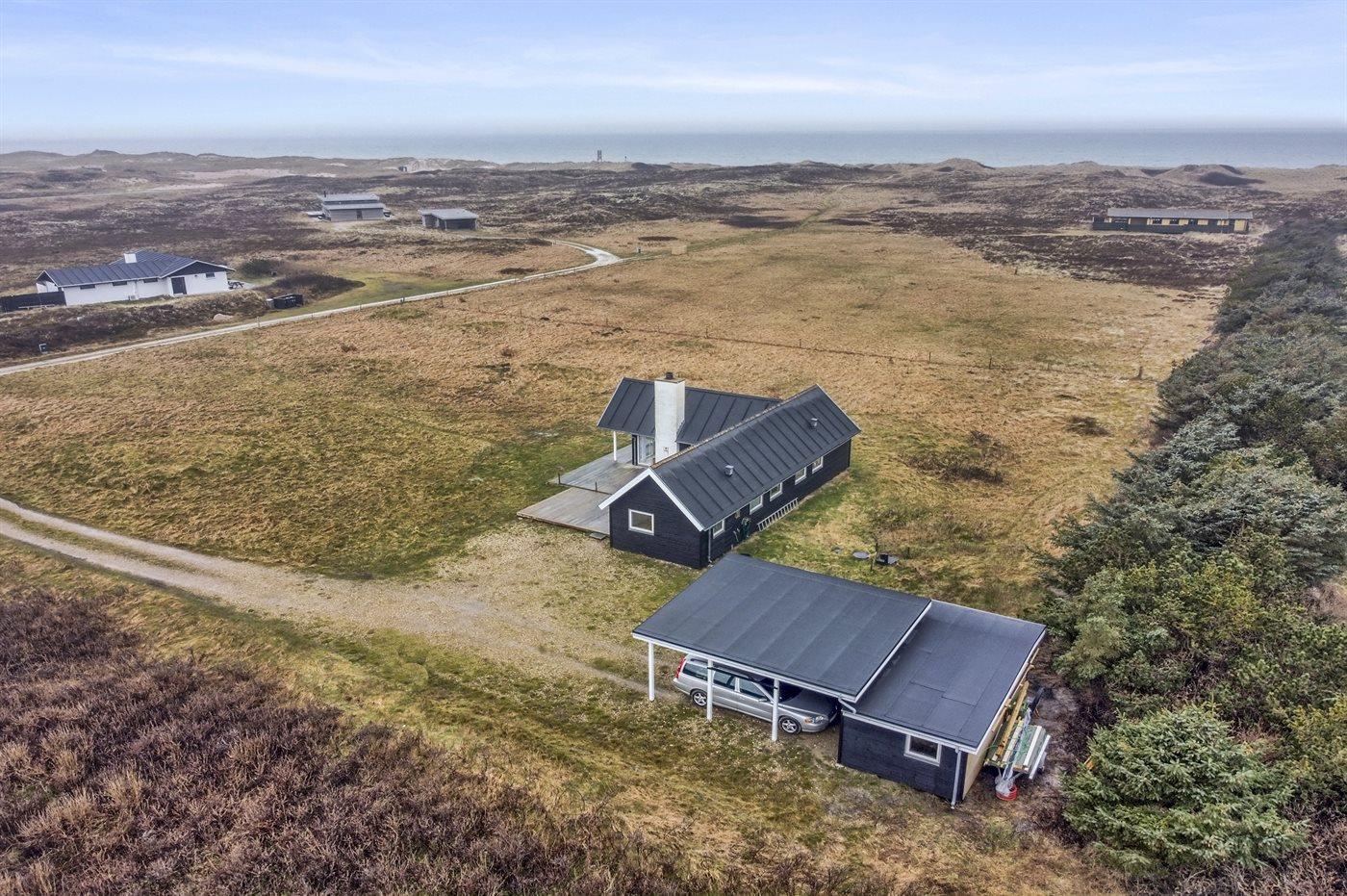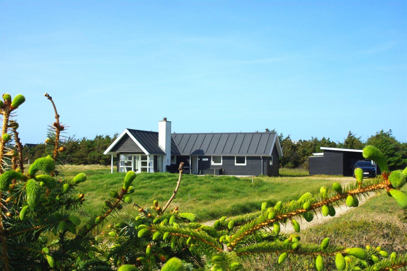 Skønt sommerhus med en flot og lys indretning beliggende tilbagetrukket på en meget stor grund, i fredelige omgivelser, og ikke langt fra det brusende Vesterhav.