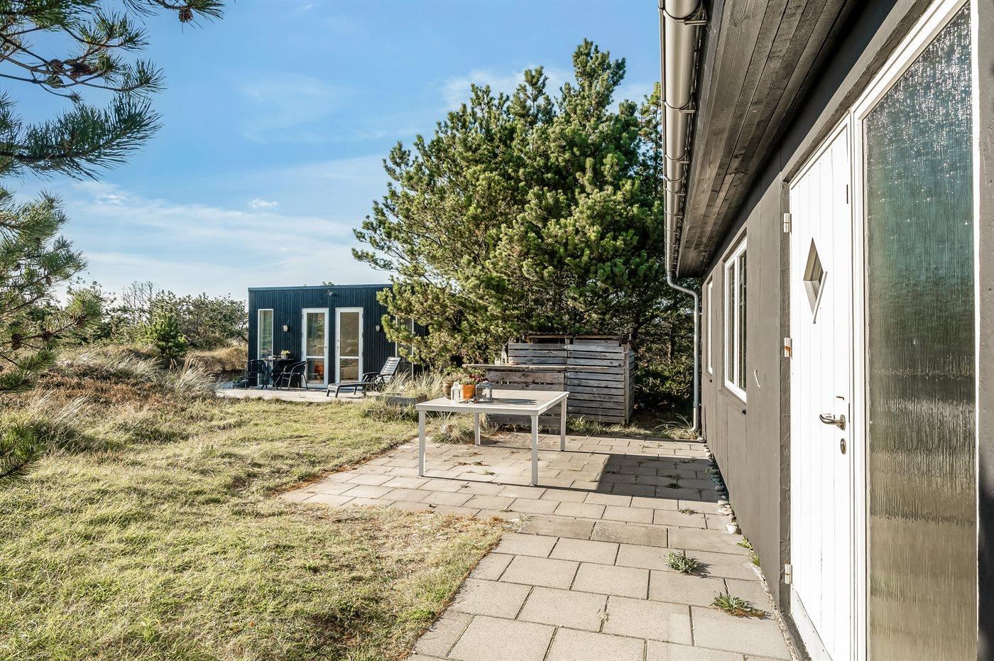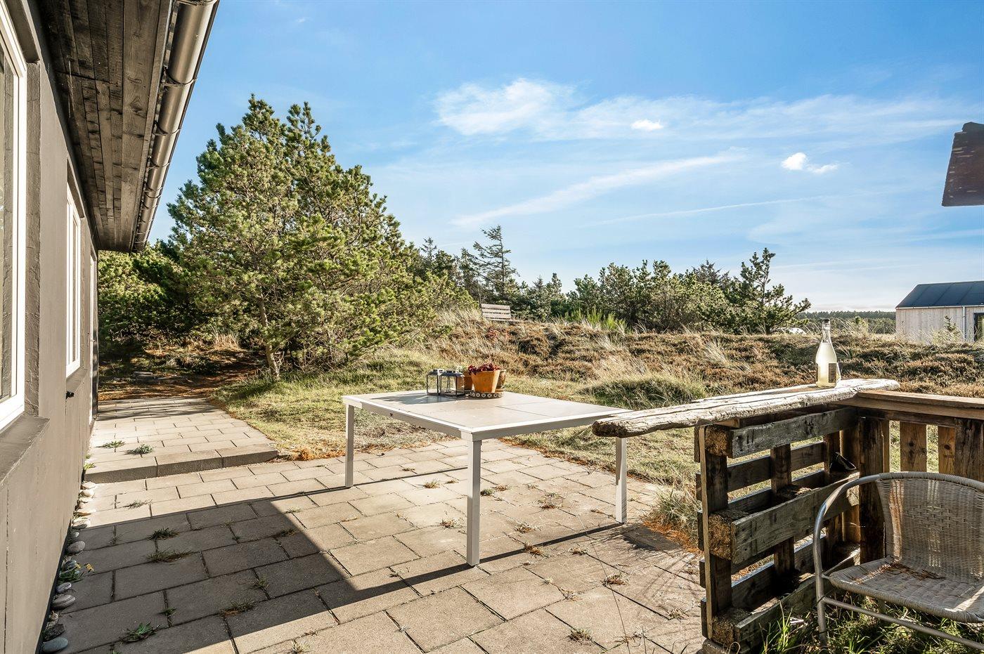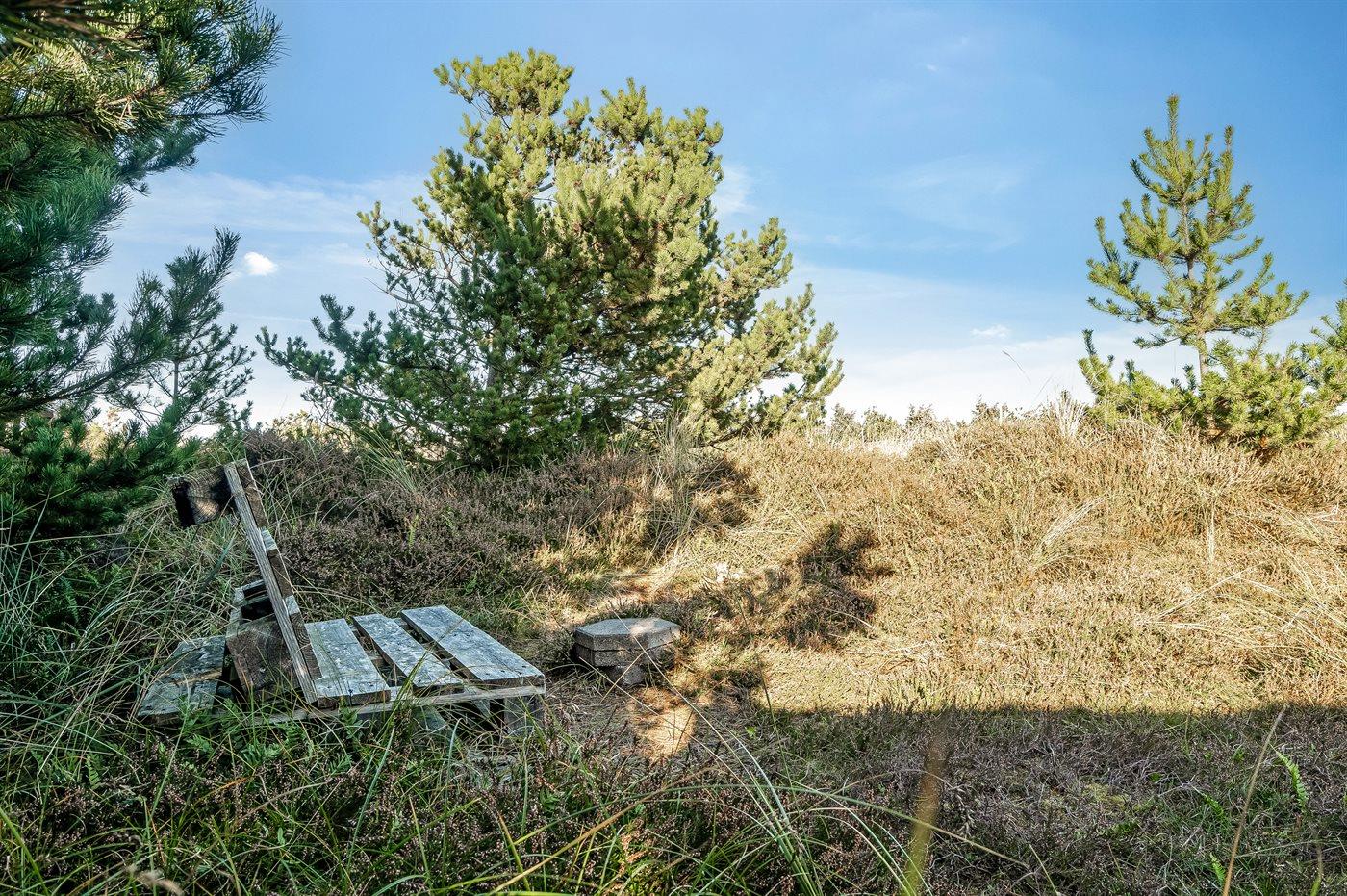 Ferieboligen er beliggende på en 1286 m² stor naturgrund. Der er 800 m til havet. Der er en sø i en afstand af 5000 m. Nærmeste forretning er beliggende i en afstand af 500 m. Der er en golfbane i en afstand af 5000 m. Til ferieboligen hører 25 m² terrasseareal. Der er redskabsrum. Udendørs bruser. Grill til rådighed. Parkering ved ferieboligen.