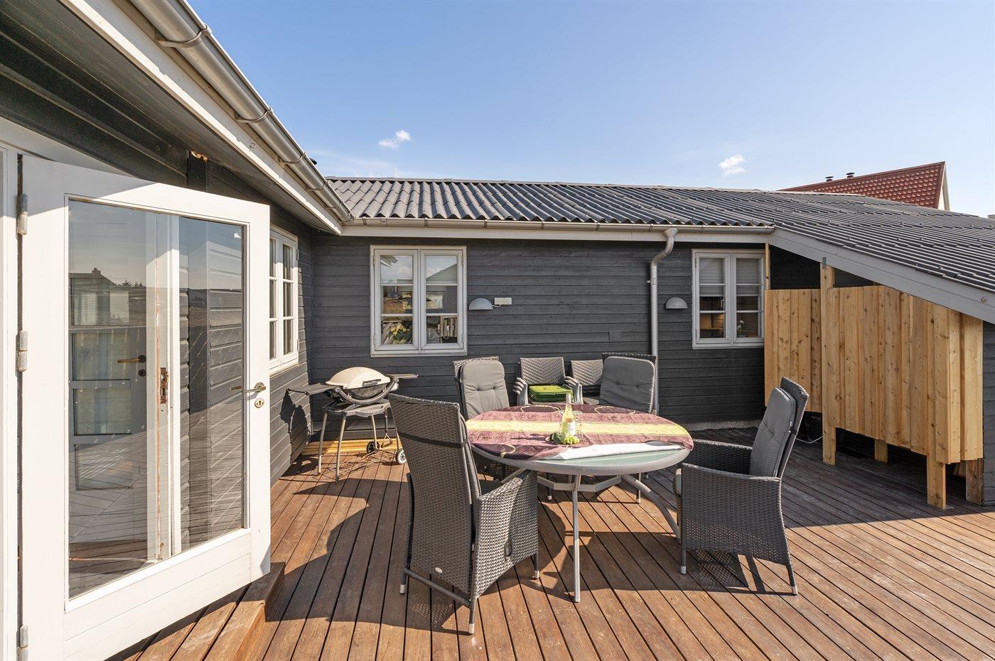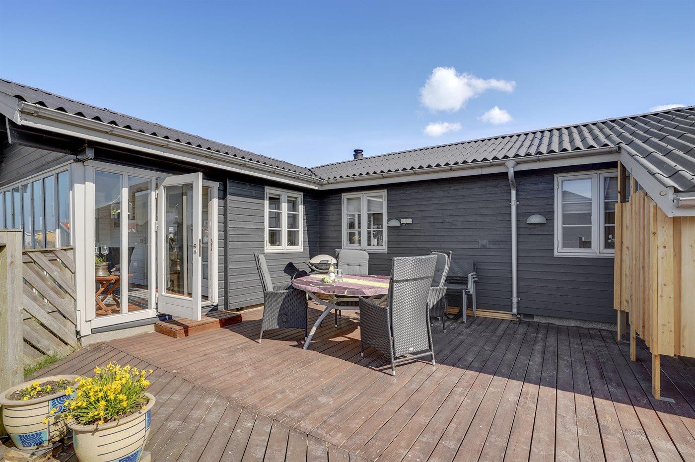 Flot sommerhus tæt på Vesterhavet med stor terrasse, udestue og udendørs pejs, ideelt til en afslappende ferie ved Klitmøller.