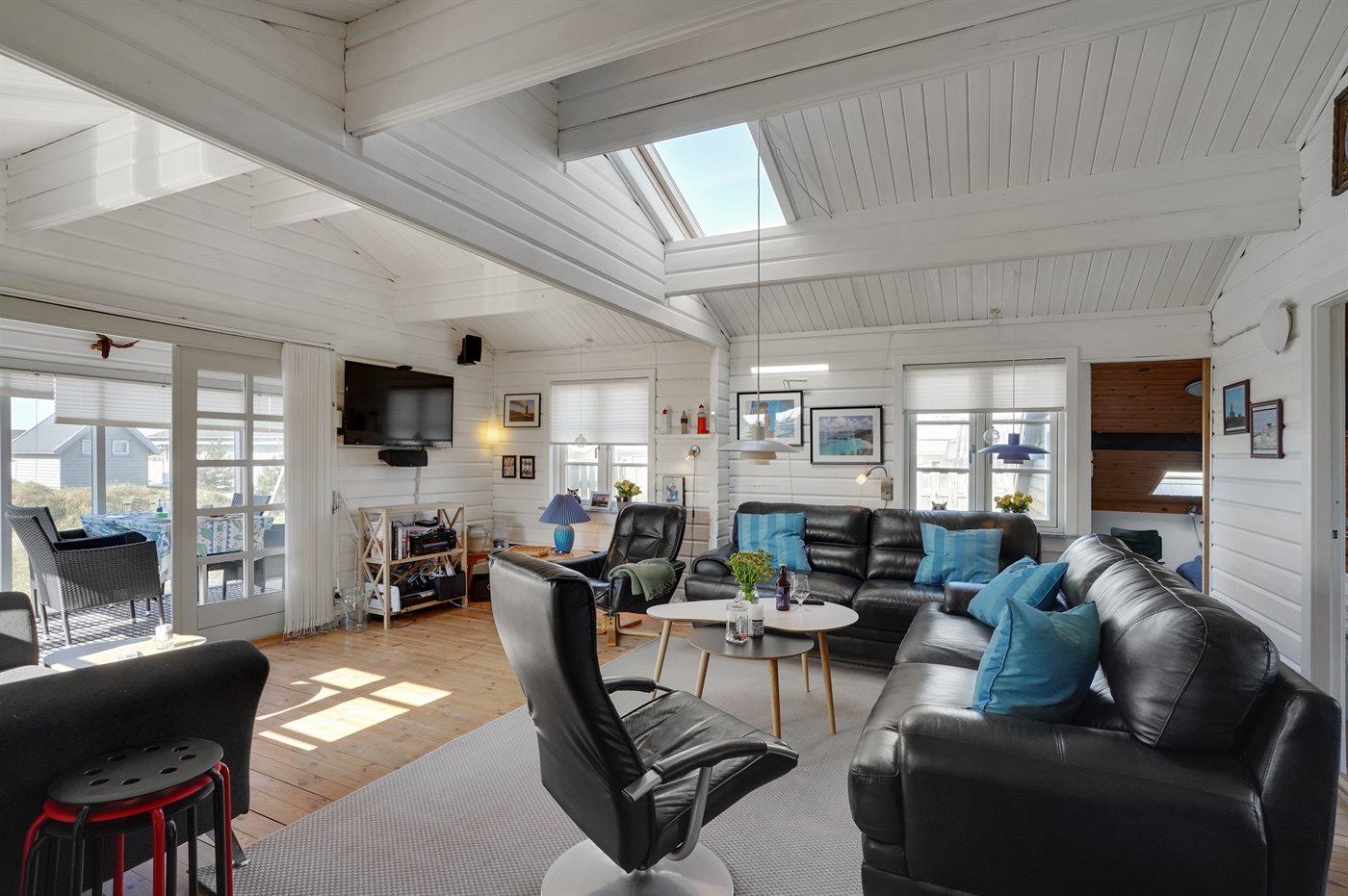 Dette flotte og velholdte sommerhus ligger helt tæt på Vesterhavet og den dejlige badestrand ved Klitmøller. Her kan I nyde dejlige timer på terrassen, læse en god bog eller bare slappe af til lyden af havets brusen.