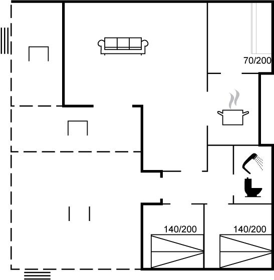 Der er i alt 3 soveværelser. Sovepladserne fordeler sig på: 4 sovepladser i dobbeltsenge. 2 sovepladser i køjeseng.