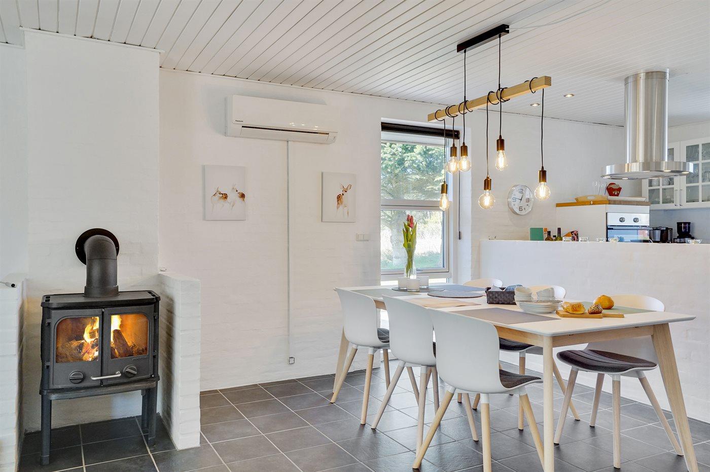 Køkkenet er udstyret med 1 køleskab. Der er 4 keramiske kogeplader, varmluftovn samt opvaskemaskine.