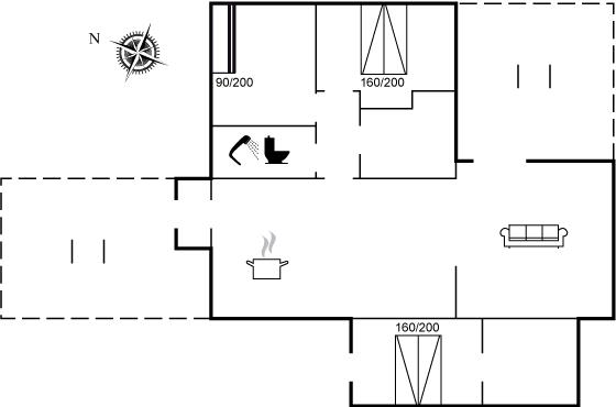 Der er i alt 3 soveværelser. Sovepladserne fordeler sig på: 4 sovepladser i dobbeltsenge. 2 sovepladser i køjeseng.