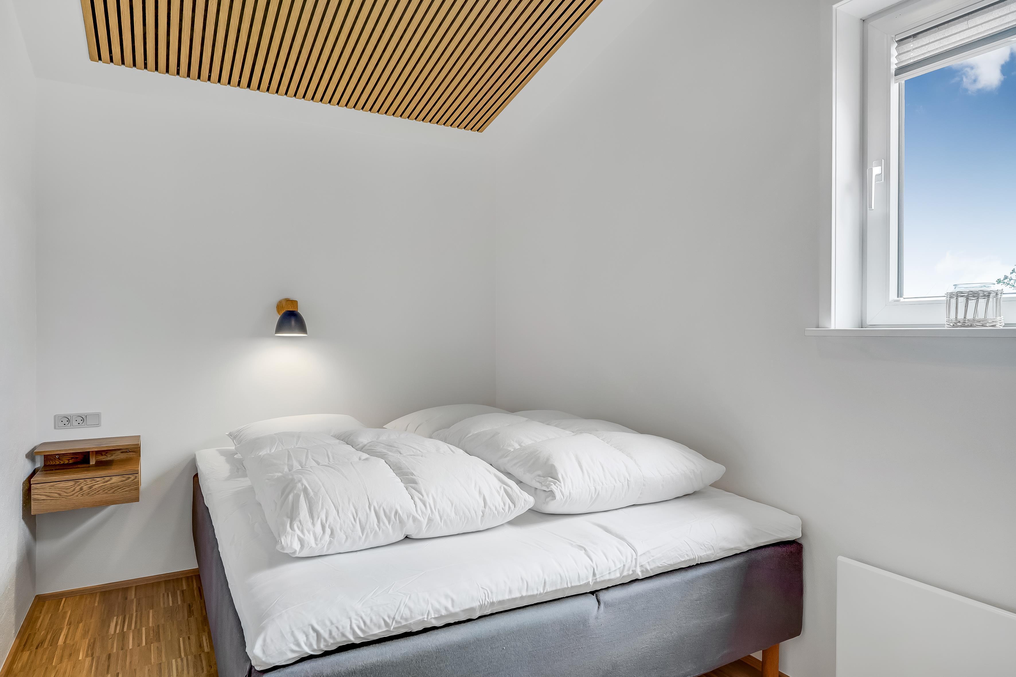 Det moderne badeværelse er udstyret med toilet, håndvask og bruseniche og gulvvarme, hvilket gør det ekstra behageligt at træde ind på kolde morgener. Huset har også et ekstra gæstetoilet, hvilket sikrer, at der aldrig er lange ventetider, selv når alle er hjemme. På Badeværelset er der desuden et indendørs spabad, hvor du kan slappe af og nyde lidt velvære efter en lang dag.