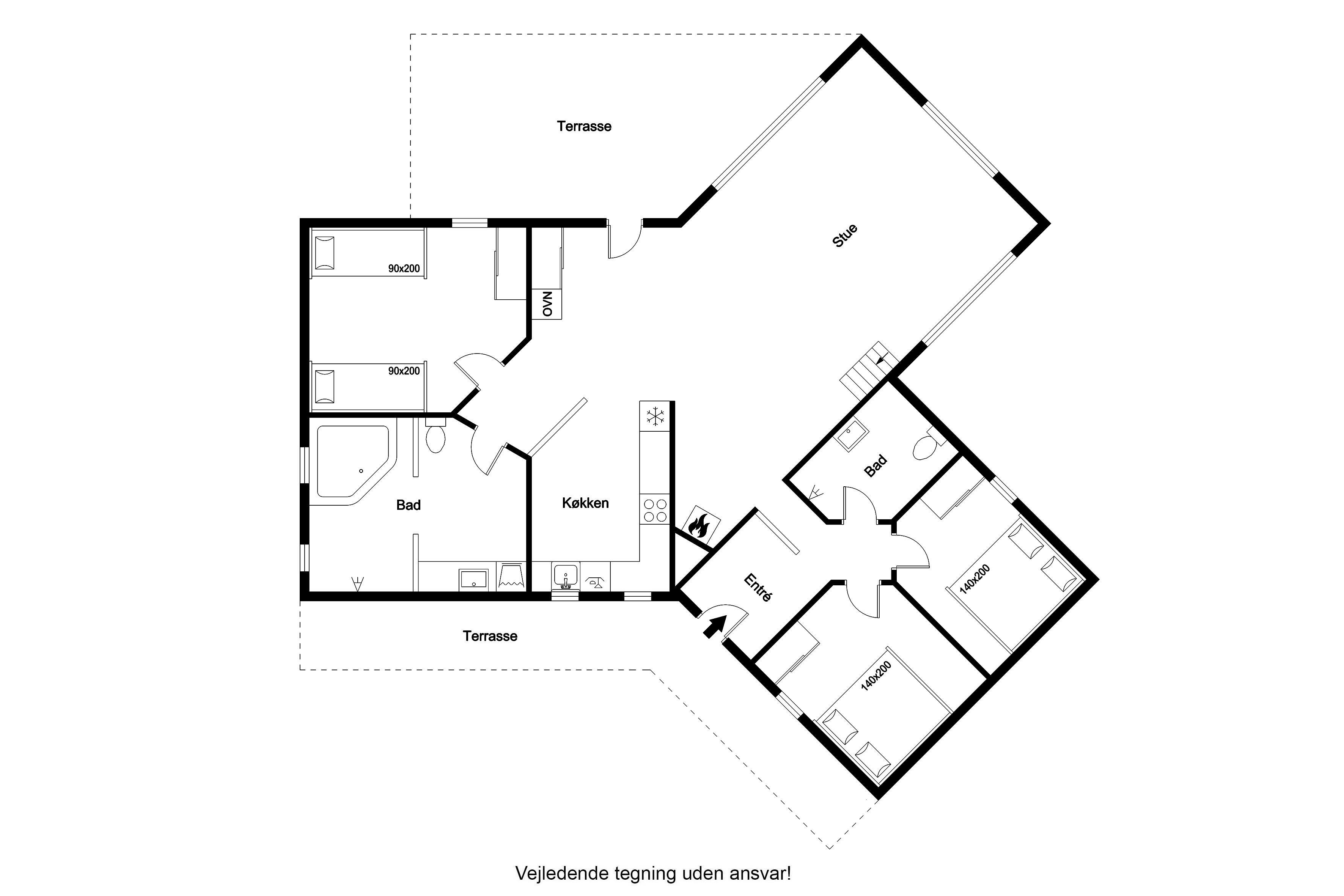 Udenfor kan børnene lege sikkert på grunden, hvor der er gynger og en sandkasse til timevis af sjov. Den rummelige terrasse er ideel til at nyde morgenkaffen eller en grillmiddag, mens man nyder den friske luft. Beliggenheden er optimal med kun 100 meter til vandet, hvor du kan tage en dukkert eller gå lange ture langs stranden. Indkøbsmulighederne er kun 300 meter væk, og der er en restaurant inden for 500 meter, så du nemt kan finde noget lækkert at spise uden at skulle rejse langt.