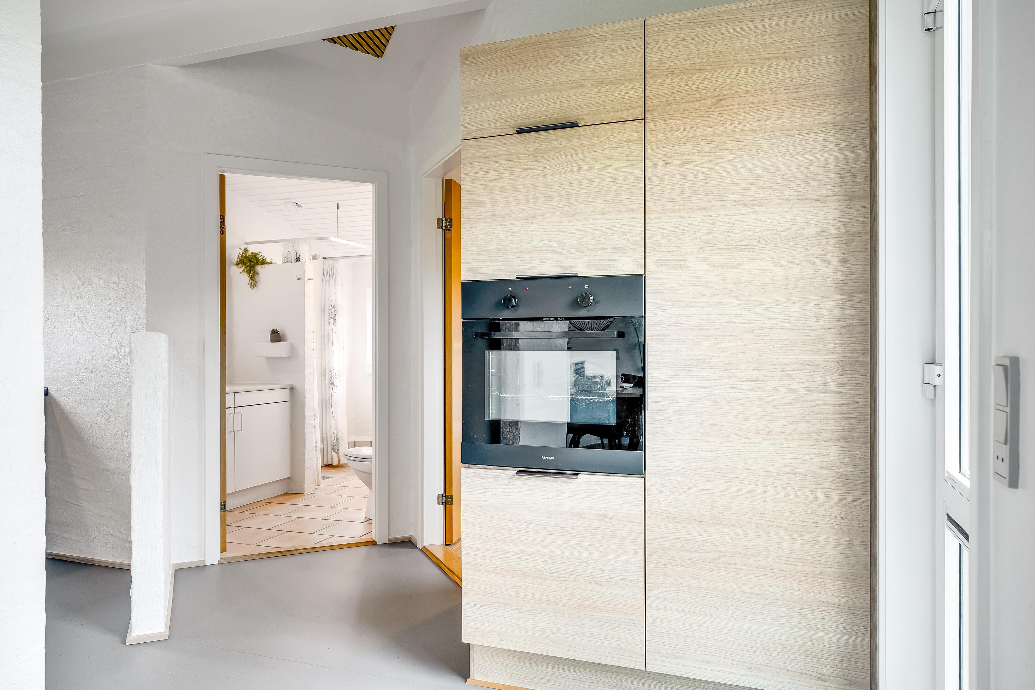 For dem, der elsker at lave mad, vil køkkenet være et sandt paradis. Det er udstyret med moderne apparater såsom induktionskomfur, ovn, mikrobølgeovn og tørretumbler. Der er også et køleskab med fryser på 40 liter, så du altid kan have friske råvarer og snacks ved hånden. Udenfor kan du tage glæde af en grill, perfekt til hyggelige sommeraftener med familie og venner på terrassen.
