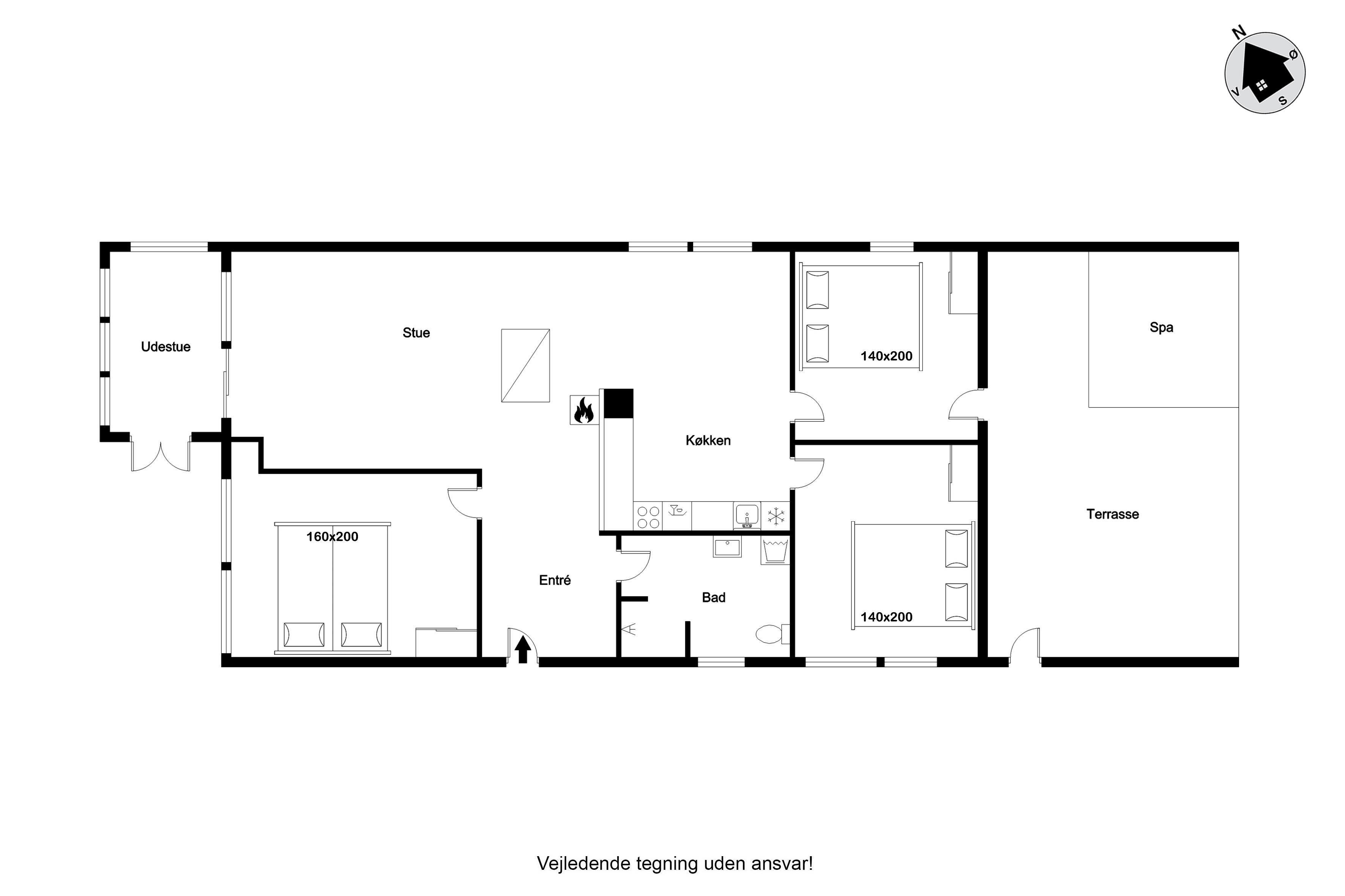 Husets indendørsareal på 87 kvadratmeter giver rigelig plads til op til 6 personer. Det er indrettet med tre godt udstyrede soveværelser, hver med komfortable dobbeltsenge, der sikrer en god nats søvn. I stuen finder du en hyggelig brændeovn, der skaber en varm og indbydende atmosfære, især på kolde aftener. Her er også to fjernsyn til underholdning, hvoraf det ene tilbyder både dansk og tysk TV. Du kan endda streame dine yndlingsprogrammer via Chromecast, hvilket gør det nemt at føle sig hjemme.