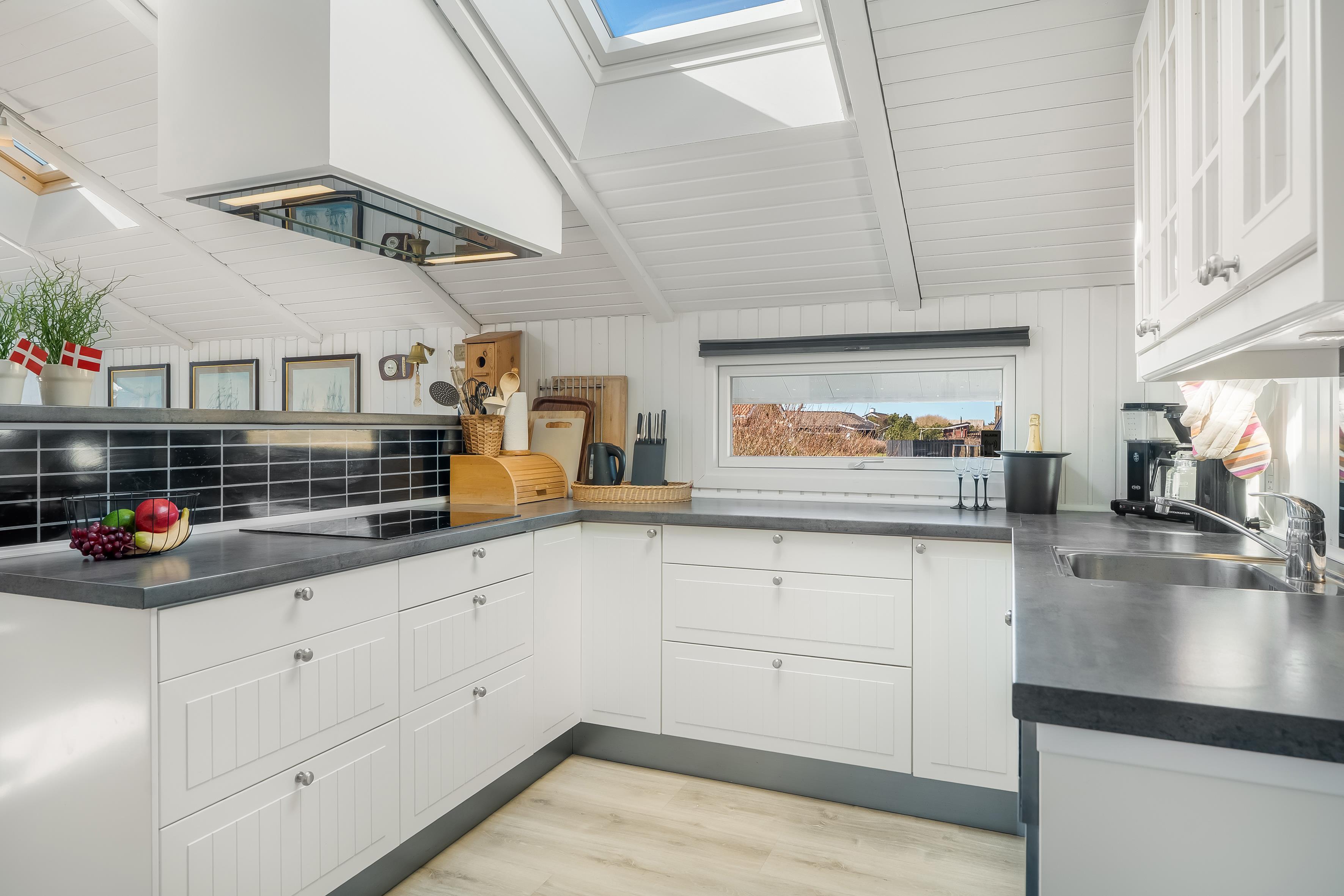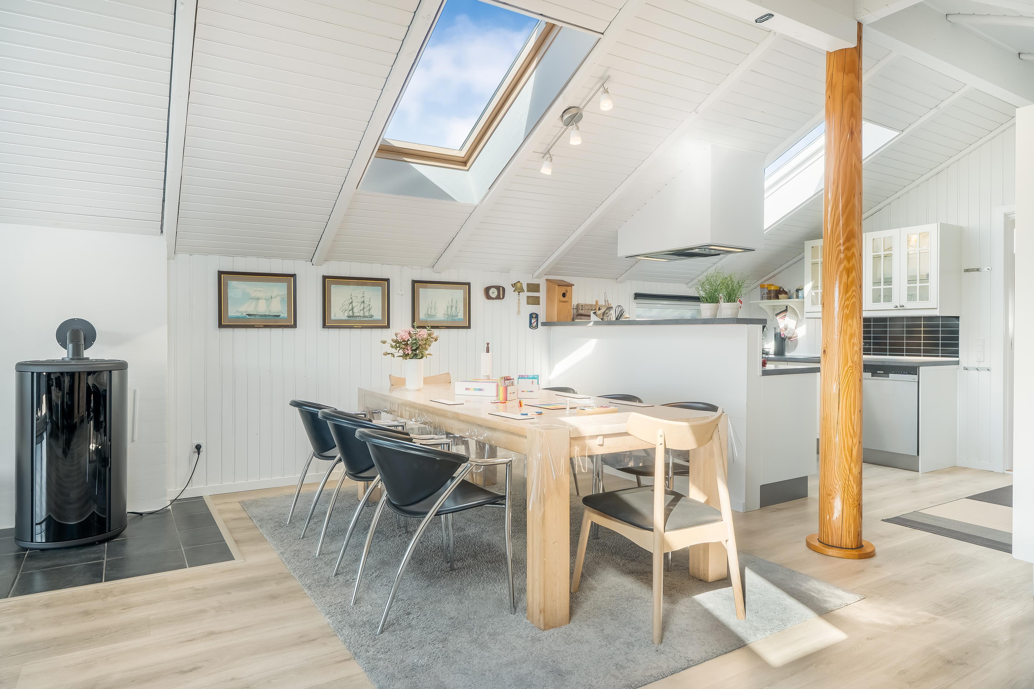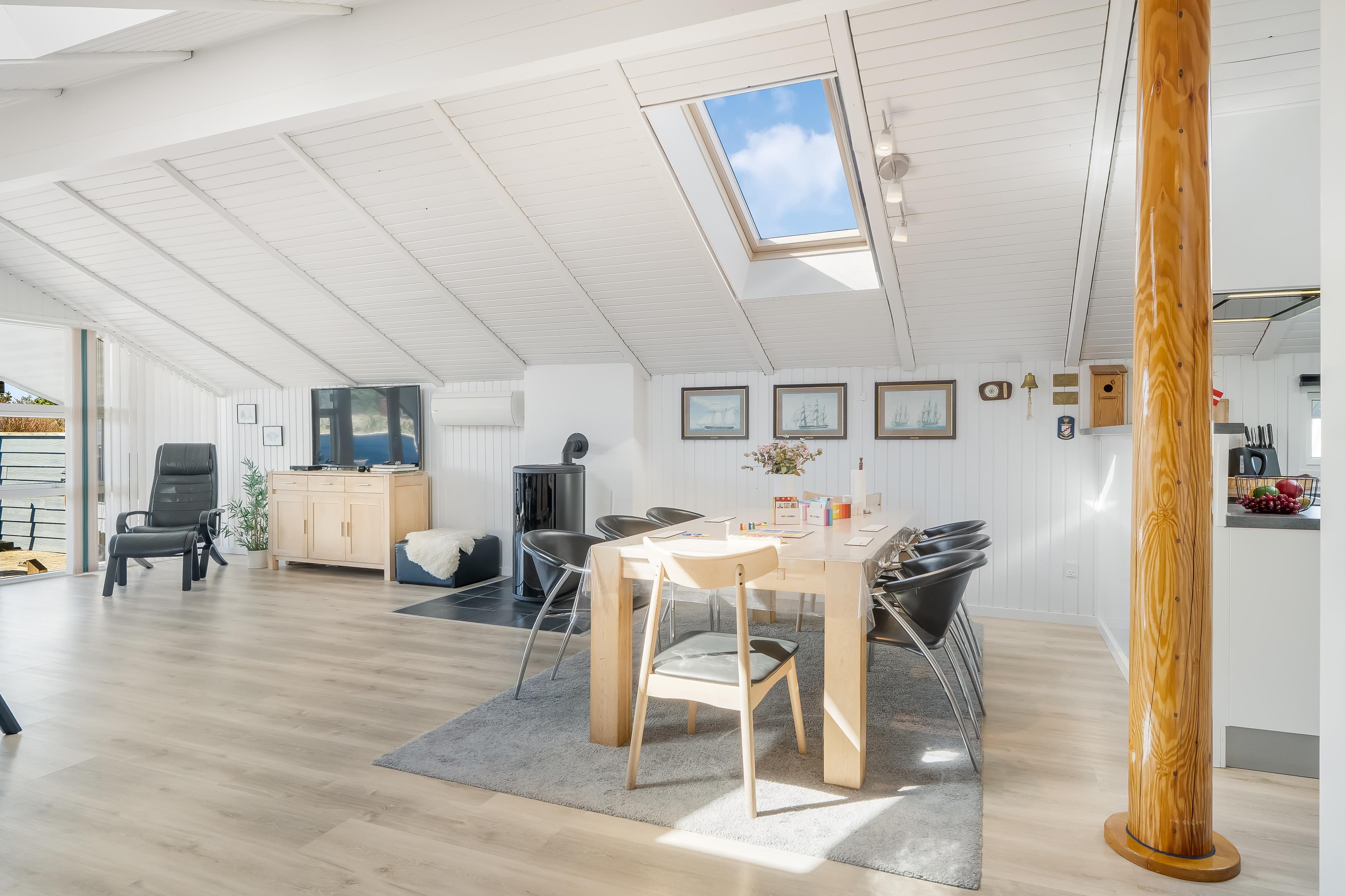 Indendørs finder I en moderne stue med en træpilleovn, som skaber en varm og hyggelig atmosfære på køligere aftener. Huset er udstyret med en energibesparende varmepumpe, der også kan fungerer som aircondition, så I kan holde temperature behagelig hele året rundt. Der er også et fjernsyn med både dansk og tysk TV, samt Chromecast til streaming af jeres yndlingsprogrammer. Det trådløse internet gør det nemt at holde kontakten med omverdenen, hvis I ønsker det.