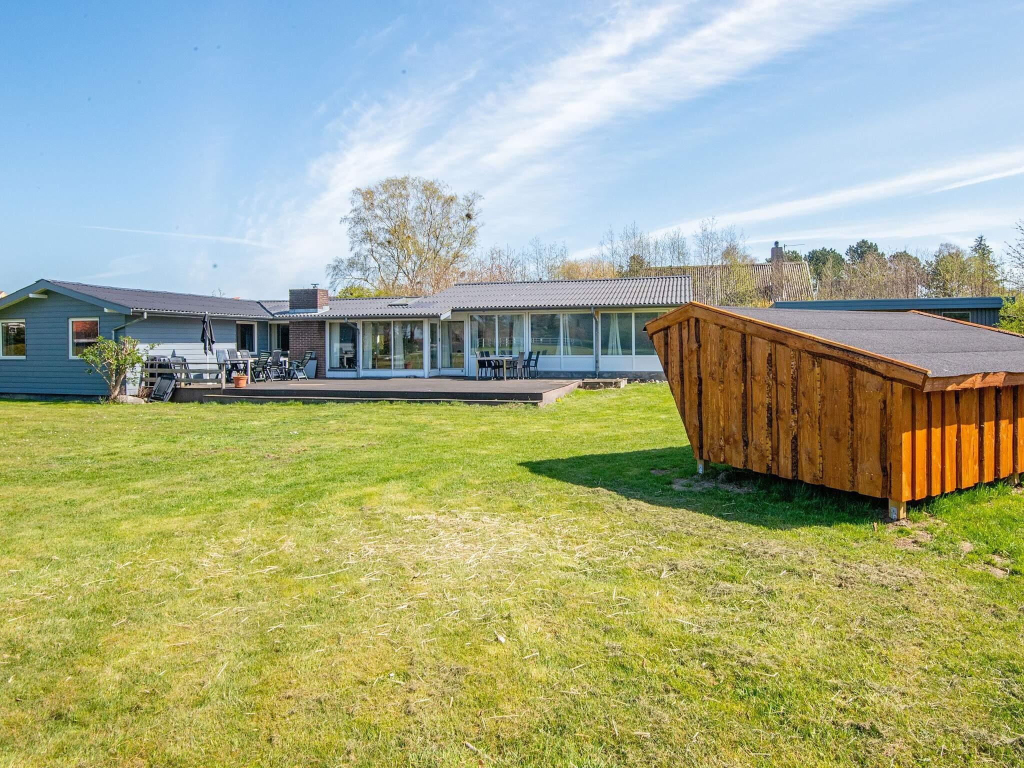 Beliggende på en naturgrund med græsplæne, hvor der er plads til leg og spil. Til børnene er der en sandkasse. Udlejes ikke til ungdomsgrupper.