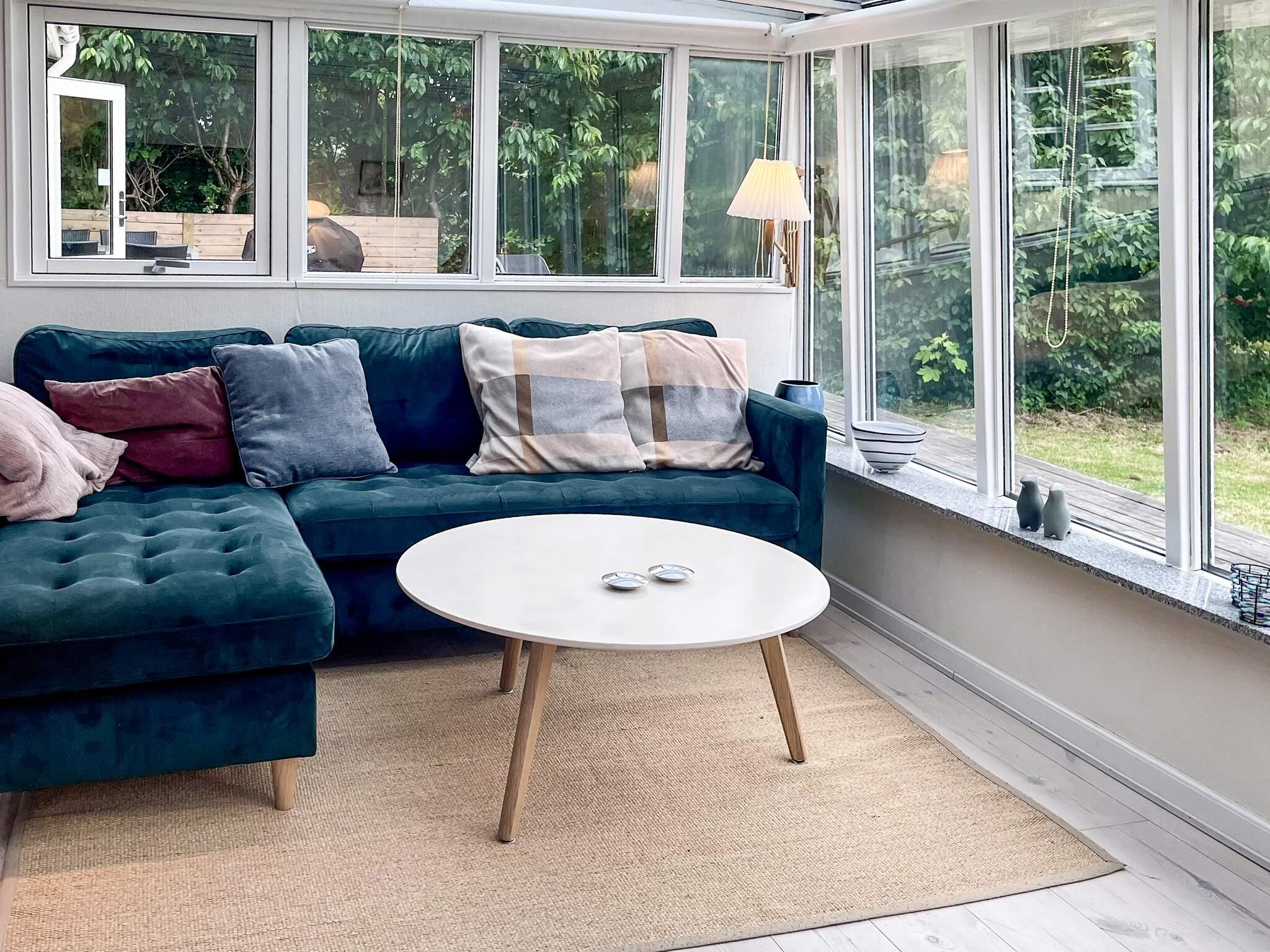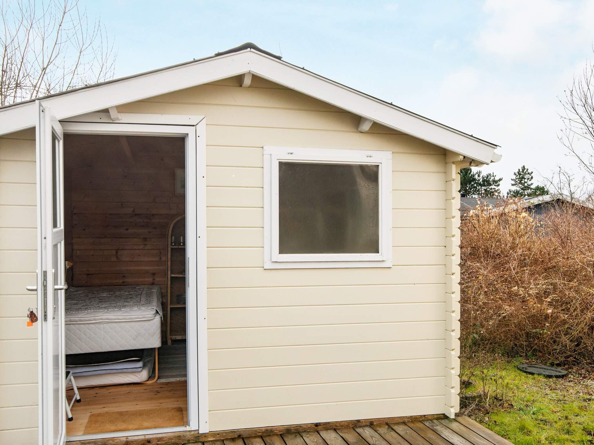Huset har to soveværelser i hovedbygningen, mens et separat anneks giver to ekstra enkeltsenge, så alle kan sove komfortabelt og privat. Ejendommen er omgivet af en træterrasse, perfekt til at nyde solskinnet: morgensolen pryder den ene side, mens forsiden af ??huset fanger eftermiddags- og aftensolen, hvilket giver masser af plads til at grille, slappe af og tilbringe tid udendørs.