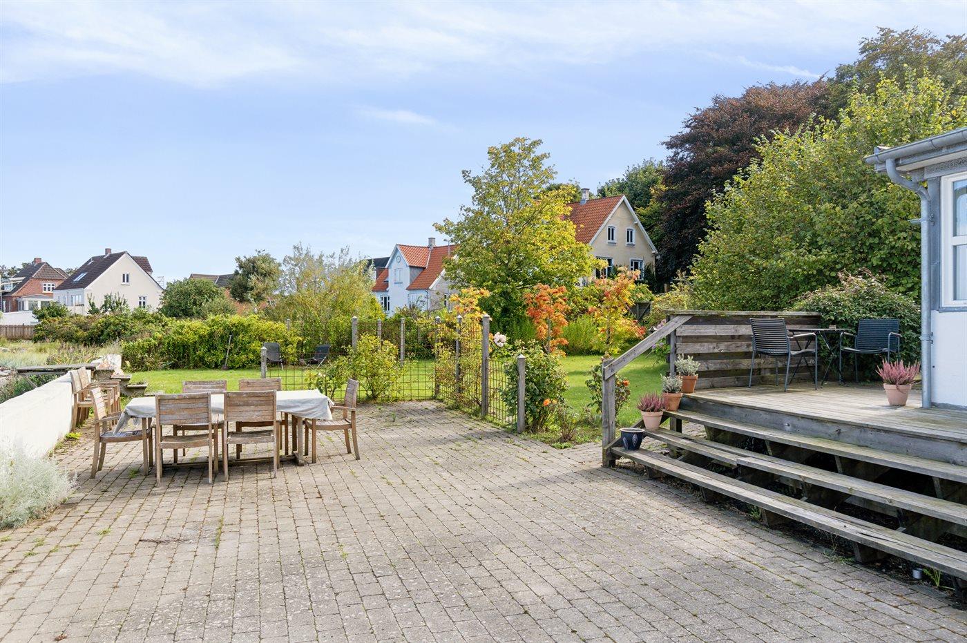 Ferieboligen er beliggende på en 800 m² stor naturgrund. Grunden er indhegnet. Der er 5 m til havet. Nærmeste forretning er beliggende i en afstand af 1500 m. Til ferieboligen hører åbent terrasseareal. Ligeledes er der adgang til udestue. Der er redskabsrum. Grill til rådighed. Der er carport til rådighed. Parkering ved ferieboligen.