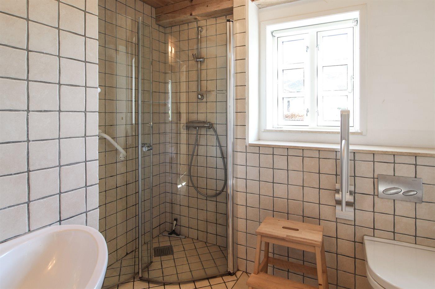 Der er 1 badeværelse med bruseniche med bruser og 1 toilet.. Der er gulvvarme på 1 badeværelse.