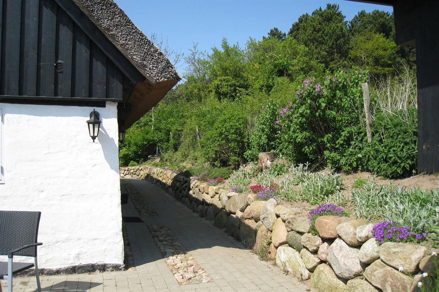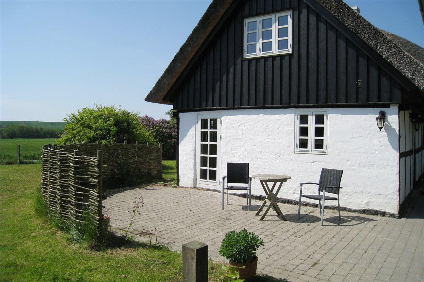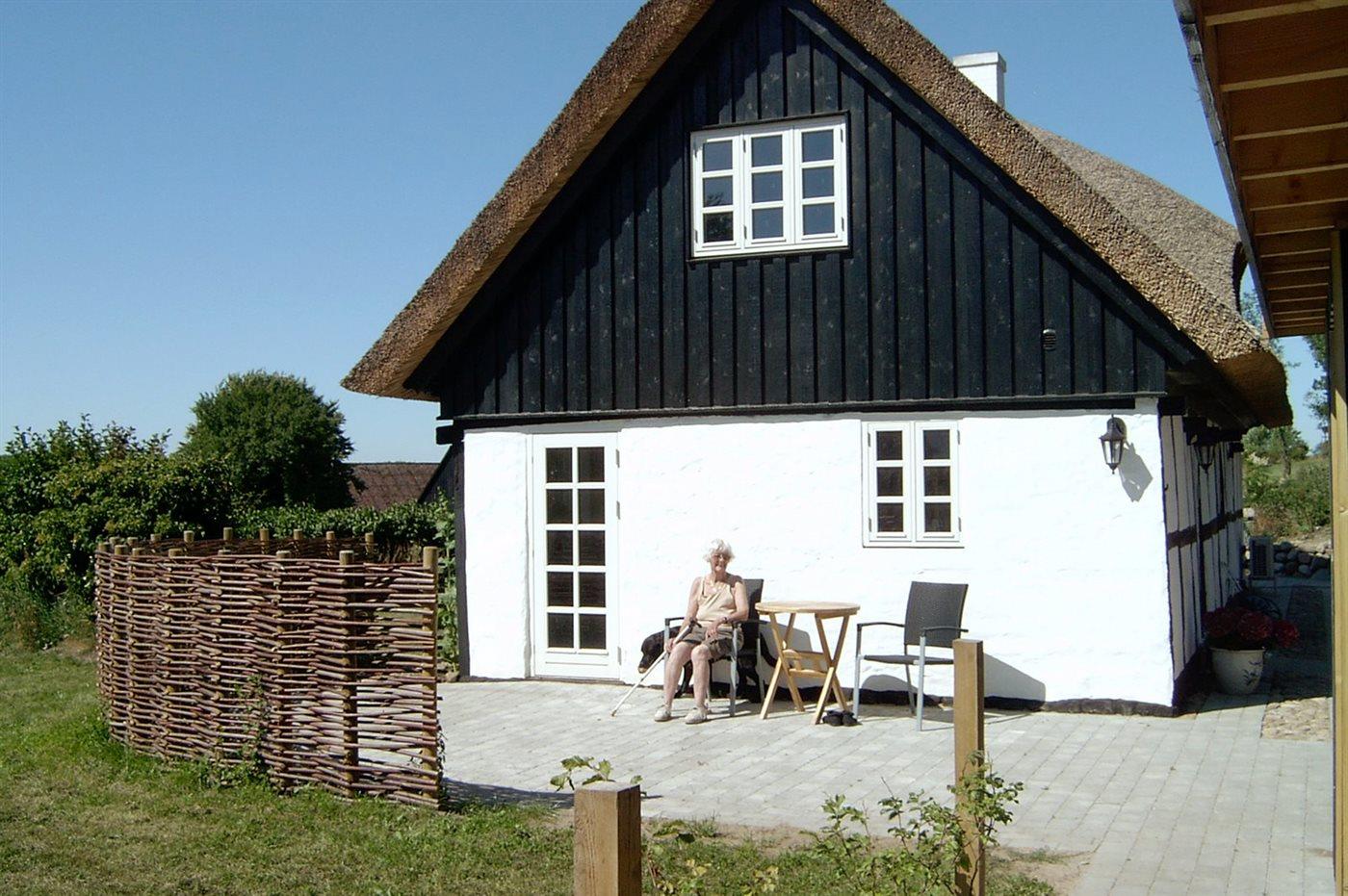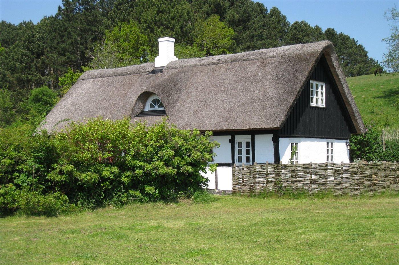 Idyllisk bindingsværkshus med stråtag i Nationalparken Mols Bjerge, kørestolsegnet og tæt på flere strande.