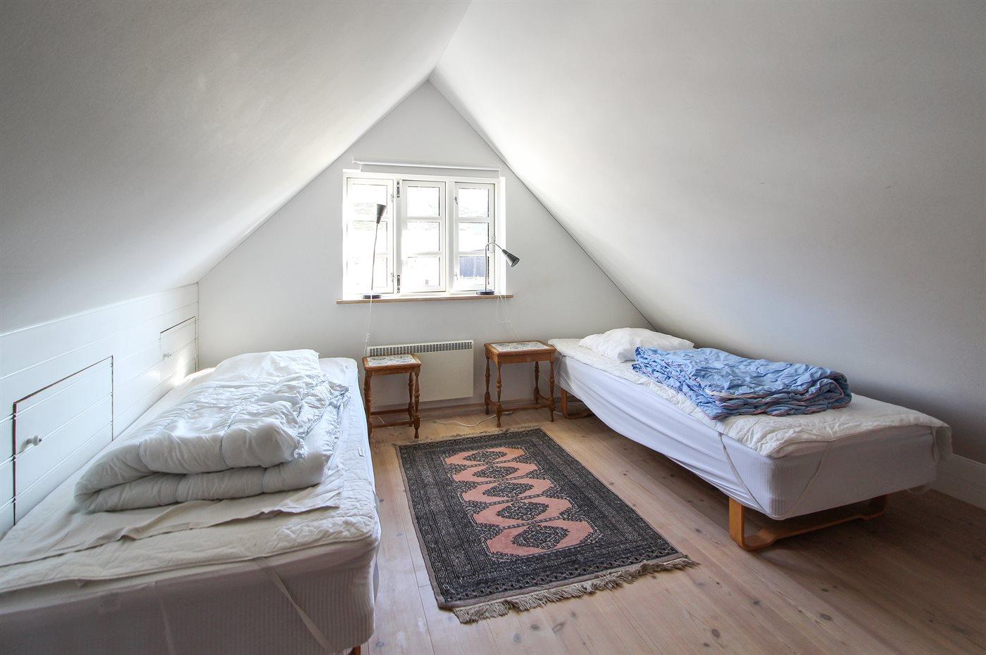 Der er i alt 2 soveværelser. Sovepladserne fordeler sig på: 2 sovepladser i dobbeltseng. 2 sovepladser i enkeltsenge. 2 sovepladser på madrasser. Derudover er der 1 stk. barneseng.