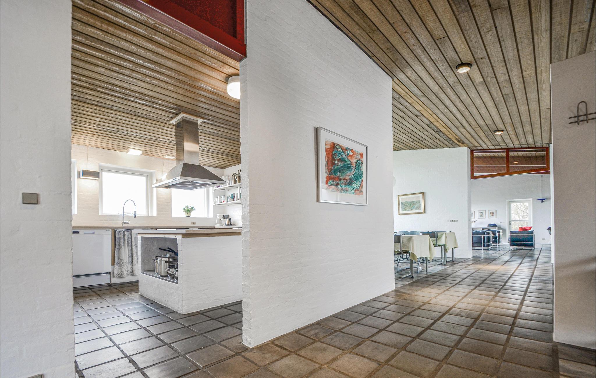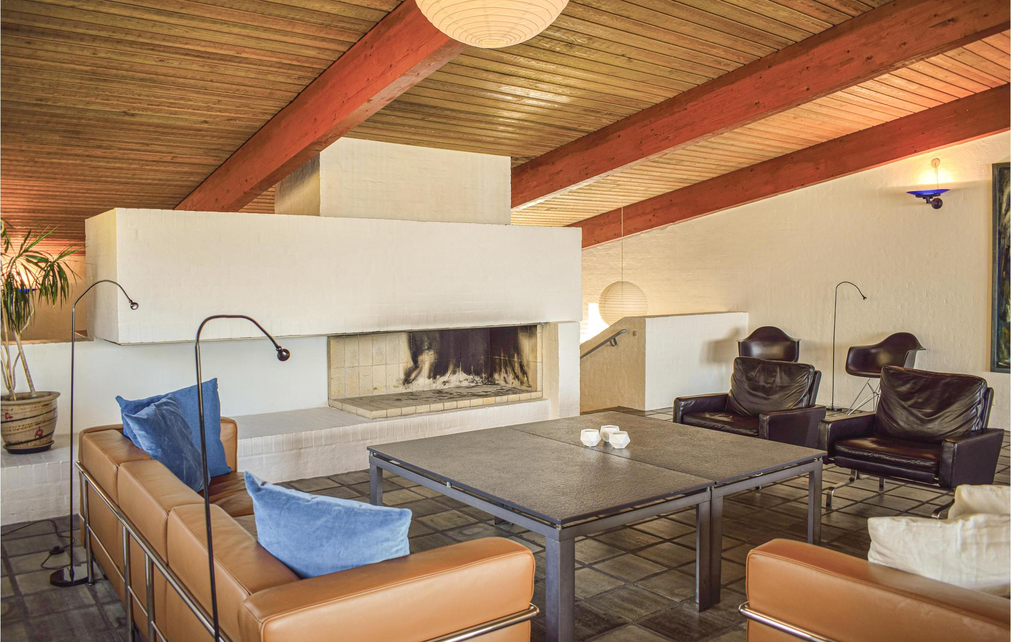 Stor feriebolig med sauna og indendørs pool lige ved stranden i Knebel.