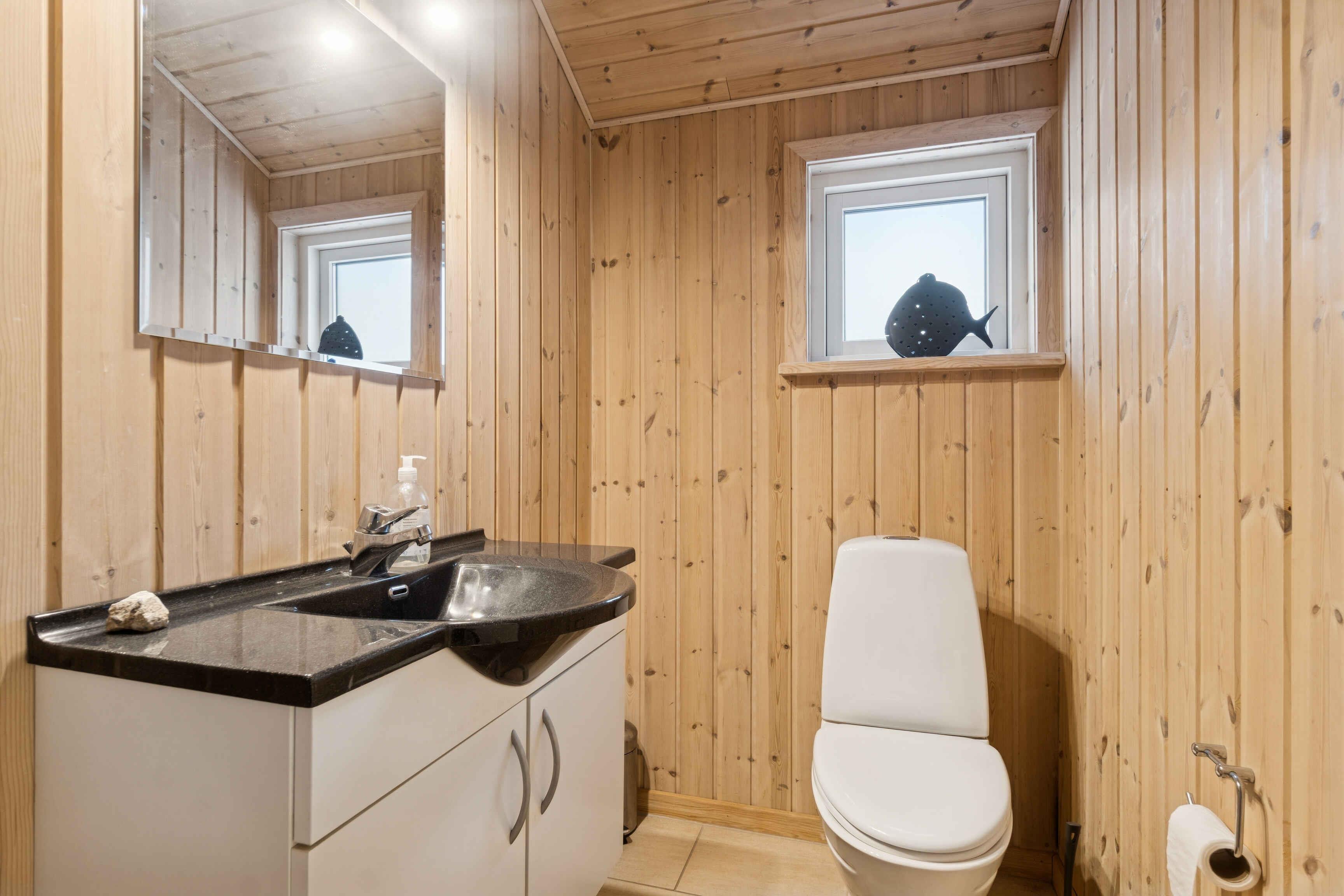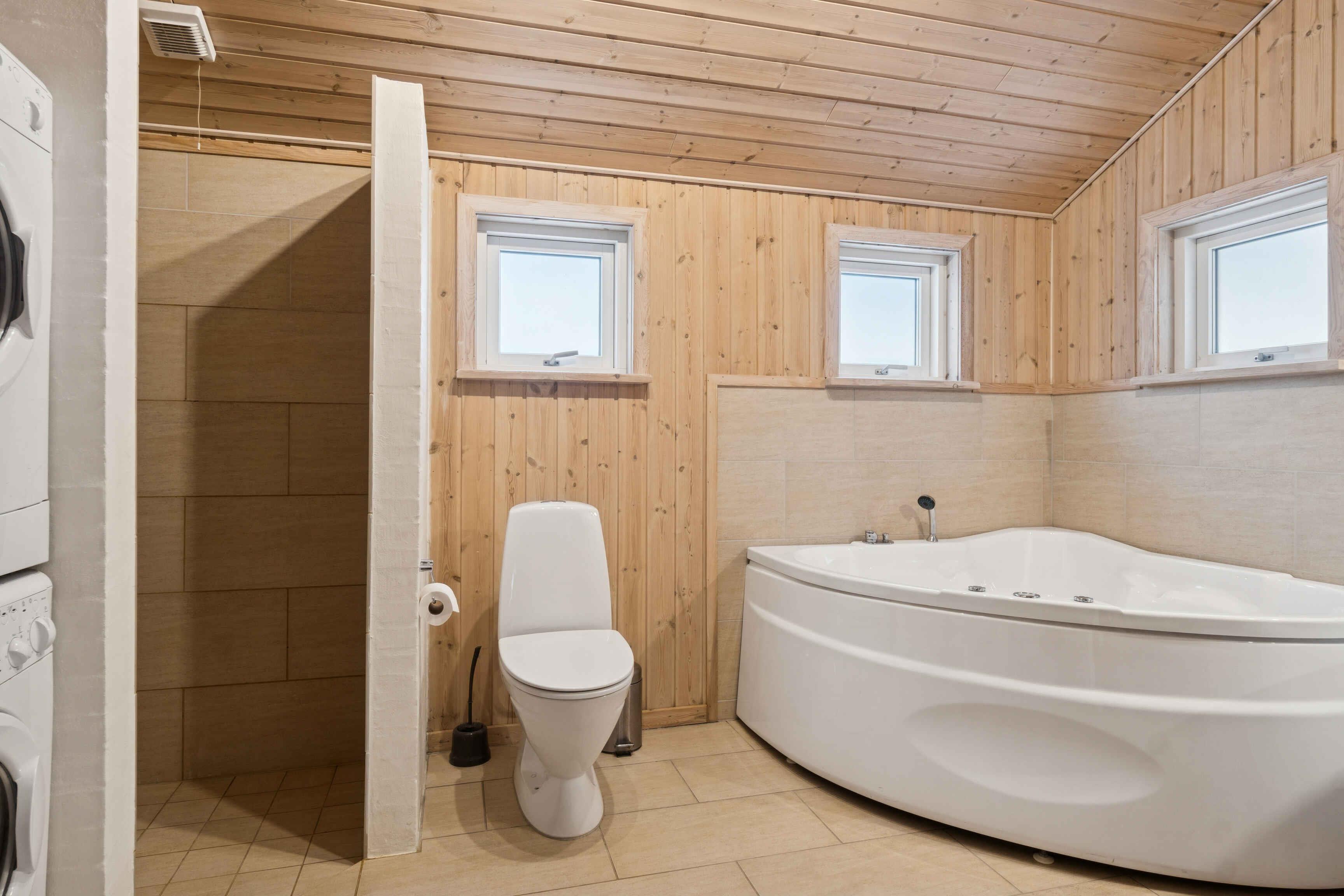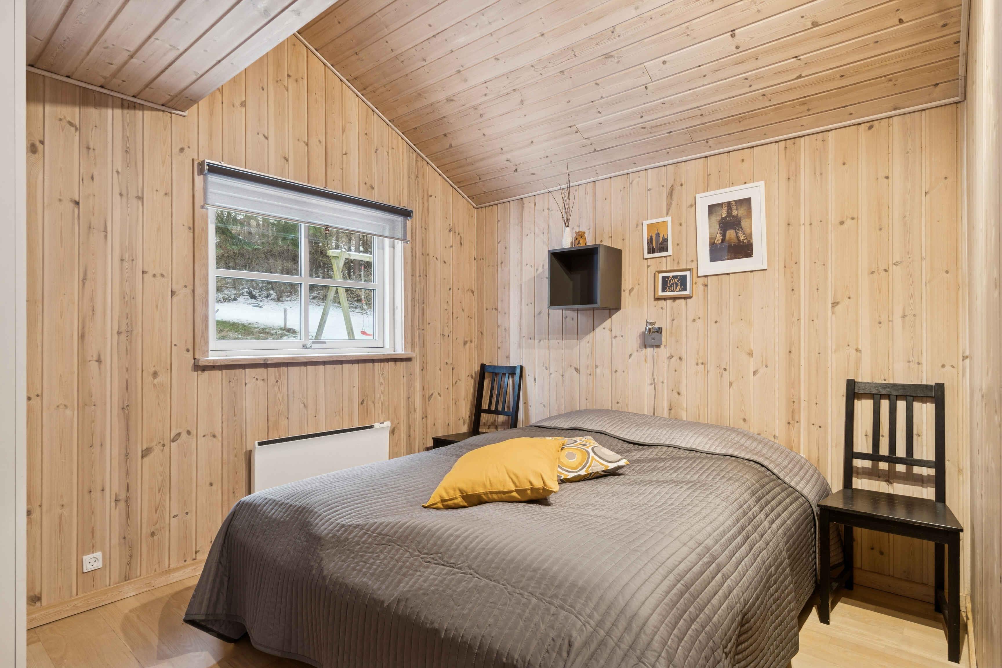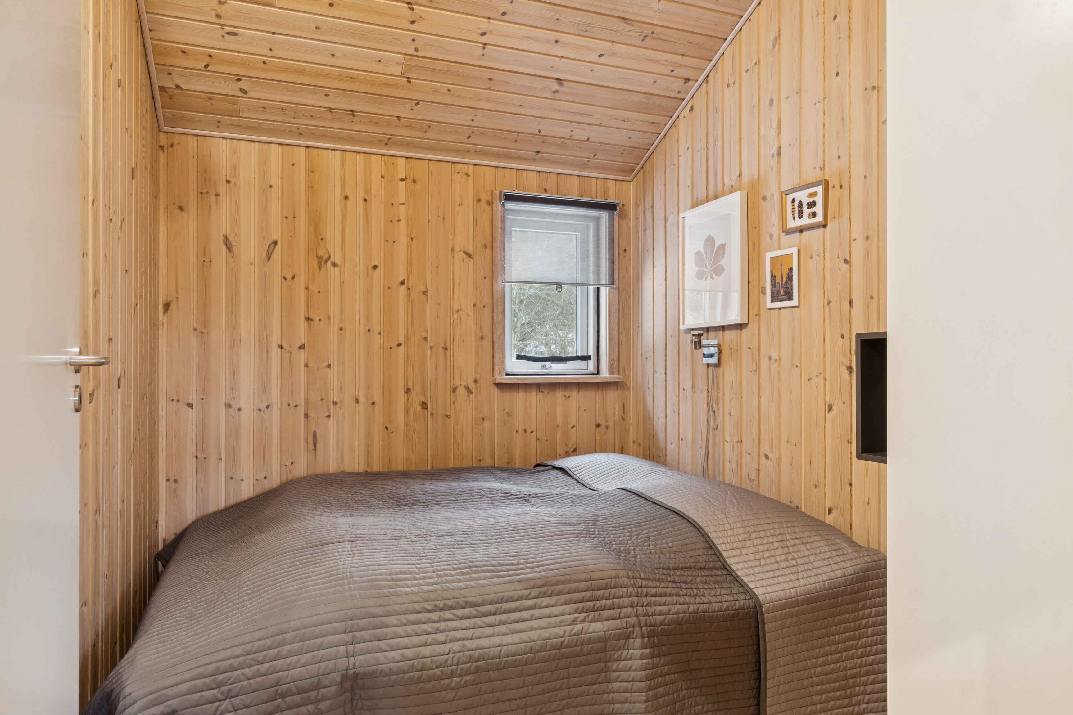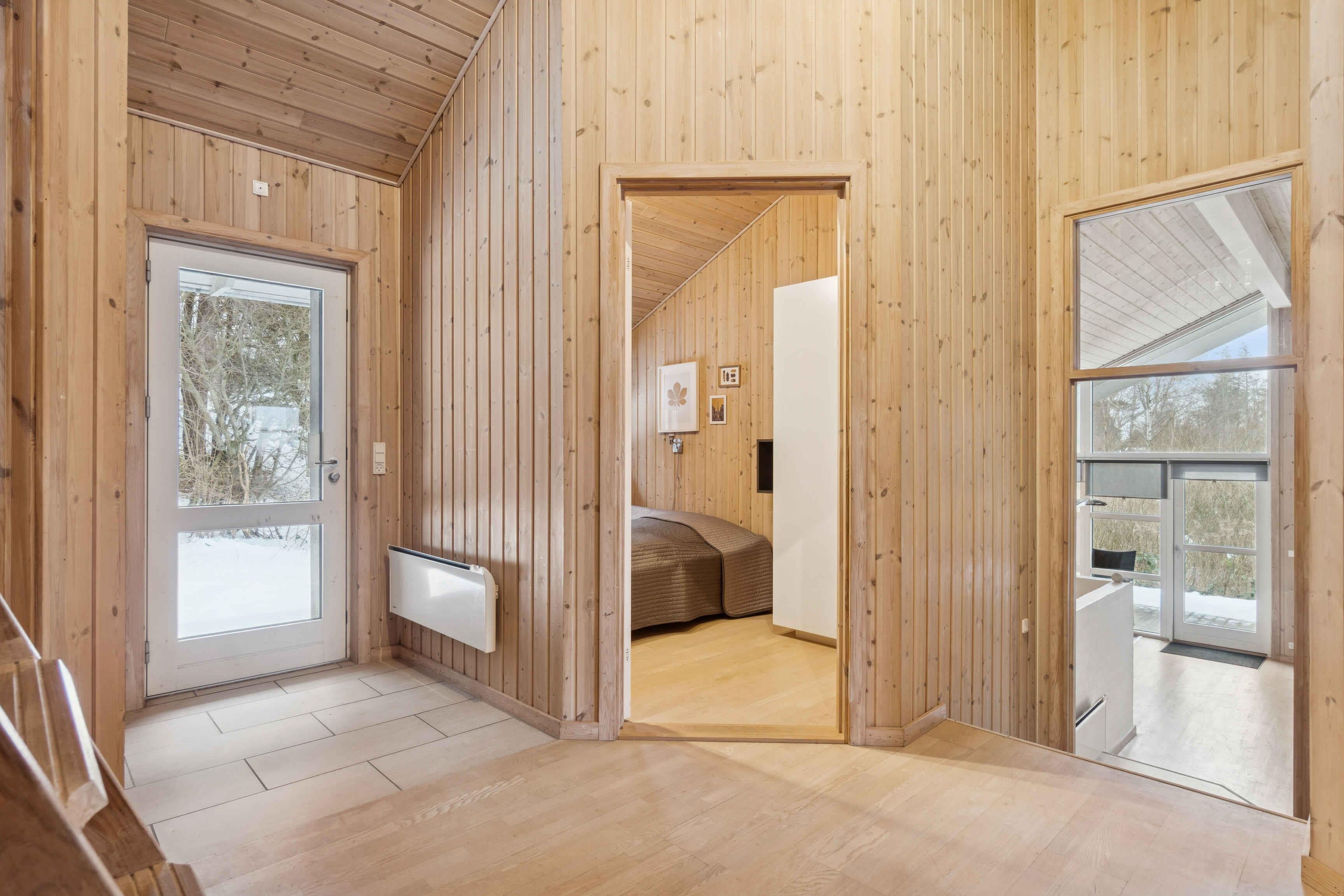 Dette moderne feriehus på 100 m² byder på en stemningsfuld ramme for ferien. Huset er bygget i forskudte plan, hvilket skaber en god rumfornemmelse og en naturlig base for ophold og hvile. Indretningen er lys og funktionel med åbent køkken og spiseplads i direkte forbindelse med stuen. Herfra er der udgang til en overdækket terrasse, hvor i kan sidde i læ for vind og vejr. Huset rummer tre pæne soveværelser samt en rummelig hems, hvilket gør det velegnet til to familier eller flere generationer. Badeværelset er flot indrettet med både spabad og sauna til afslapning efter dagens oplevelser. Feriehuset ligger ved en meget lille sø, og naturen kan opleves direkte fra terrassen. Her er der ro, fugleliv og en særlig nærhed til omgivelserne, som indbyder til afslapning og udeliv. Helgenæs-området er et pragtfuldt naturområde med bakket terræn, snoede veje og udsigt til vandet fra mange steder. Det rige dyreliv og den varierede natur gør området ideelt til vandreture og cykling. Der er cirka 450 meter til vandet, og kysten byder på gode muligheder for badeture og gåture langs stranden. En udflugt til Sletterhage Fyr er også oplagt og giver flotte udsigter over havet. Området er fredeligt og uden hverdagsstress, hvilket også betyder, at mobildækningen kan svinge i kvalitet. Til gengæld får I en ferie med fokus på natur, samvær og ro i smukke omgivelser.
