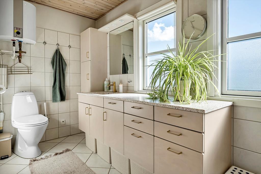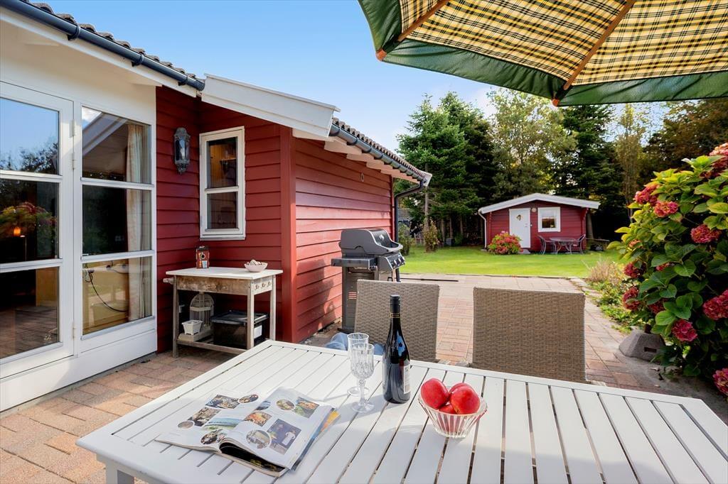 Nyd livet udenfor: Huset har en dejlig have, hvorfra man kan høre havets bølger, og en skøn terrasse med havemøbler, parasol og grill. Tag en tur til stranden og nyd en frisk dukkert i havet.