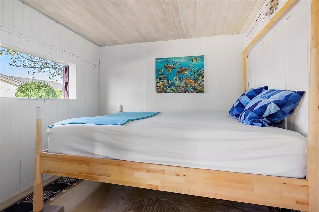 Velkommen indenfor: Feriehuset indeholder kombineret køkken og opholdsstue. Køkkenet har udgang til stor terrasse og der er også et dejligt overdækket terrasseområde foran huset. Stor lys opholdsstue med god spiseplads i forlængelse af køkkenet. Tænd gerne op i brændeovnen på de køligere dage, og lad feriestemningen brede sig. Dejligt lyst badeværelse med med bruseniche og vaskemaskine. To soveværelser, heraf et værelse med en enkeltseng og en med dobbeltseng. Desuden er der flere sovemuligheder i de tilhørende to annekser. Fra det ene anneks, kan du fra sengen nyde udsigten direkte ud mod havet. Tag også en rolig stund i husets entre, hvorfra du også kan sidde og nyde den skønne udsigt fra vinduet.