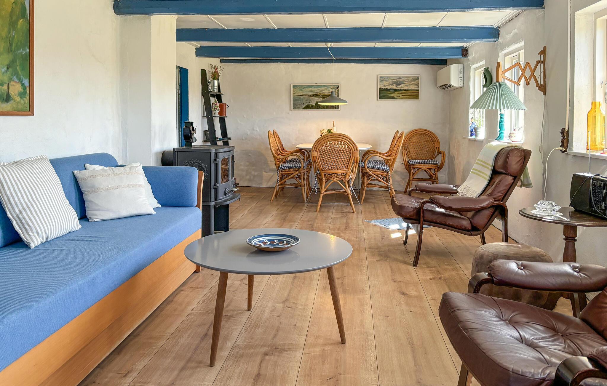 Dette funktionelt udstyrede feriehus giver jer mulighed for at tilbringe nogle afslappende dage tæt på naturen. Hvis I søger fred og ro væk fra de turistprægede områder, er I kommet til det rette sted. Hyg jer i stuen med brændeovn. Indretningen med trægulv, lænestole og sofa skaber en varm atmosfære. Brug siddehjørnet til at spille sjove spil eller til stille læsestunder. Den tilstødende spisestue giver plads til fælles måltider. Tilbered enkle retter i det funktionelle køkken, hvor der også findes en lille spiseplads.