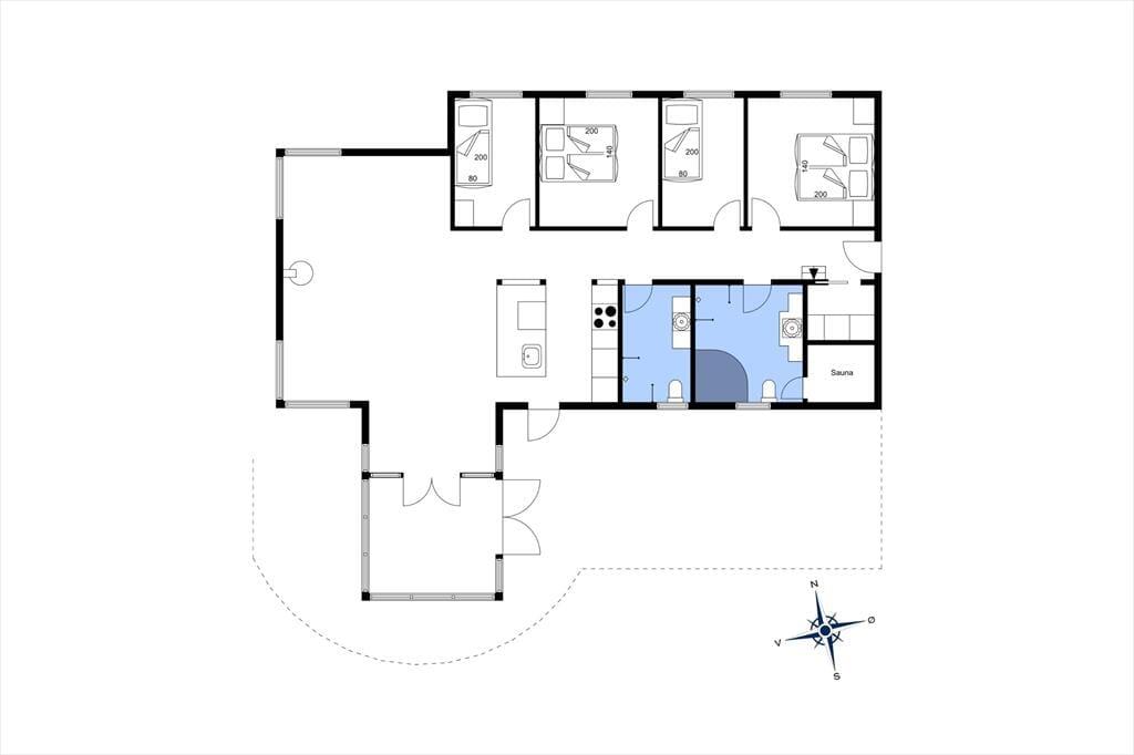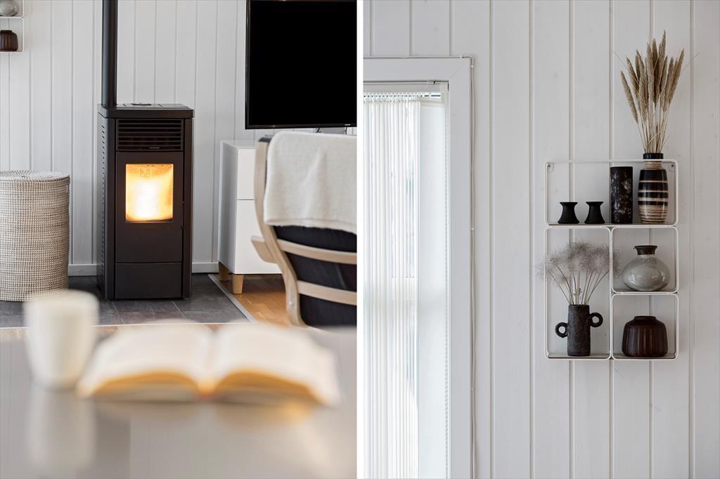Måske er haven vild og vilter, men der er styr på tingene inden døre. Her venter der dig nemlig en lys og velindrettet feriebolig med pænt møblement og lækre detaljer – inklusiv en brændeovn i stuen såvel som spabad og sauna på det største af de to badeværelser. De fire soveværelser indbyder til både middagslure og en god nattesøvn, men når du vil hygge dig med dine kære, er det sikkert i stuen, at I vil samles for at spille spil, se film sammen eller bare dase side om side. I det flotte køkken kan I sagtens stå flere, hvis madlavningen skal være et fælles projekt, og når det er tid til at dække bord, kan I lige overveje, om måltidet skal indtages ved spisebordet eller ude i den dejlige, lysfyldte udestue.