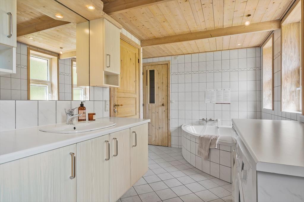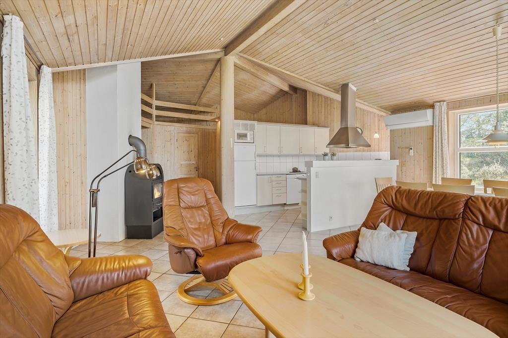 Har man en stor familie, eller vil man gerne have plads til besøg fra bedsteforældre og venner undervejs i ferien, så har dette sommerhus de helt ideelle rammer til formålet. Huset har god plads med et stort opholdsrum med åbent køkken, spiseplads og stue med brændeovn, tv og udgang til terrasser, og derudover fem soverum med 9 sengepladser og to badeværelser, hvoraf det ene er med spabad og bruser. Her er indrettet i en enkel, men hyggelig stil, med klinkegulv, lyse vægge og højt til loftet og sommerhuset er udstyret med alle tænkelige hjælpemidler fra opvaskemaskine til tørretumbler, så man kan holde så afslappende en ferie som overhovedet muligt. Endelig skal det gratis og trådløse internet nævnes, så medbring endelig pc eller computer, så man har mulighed for at søge information og oplysninger om området.