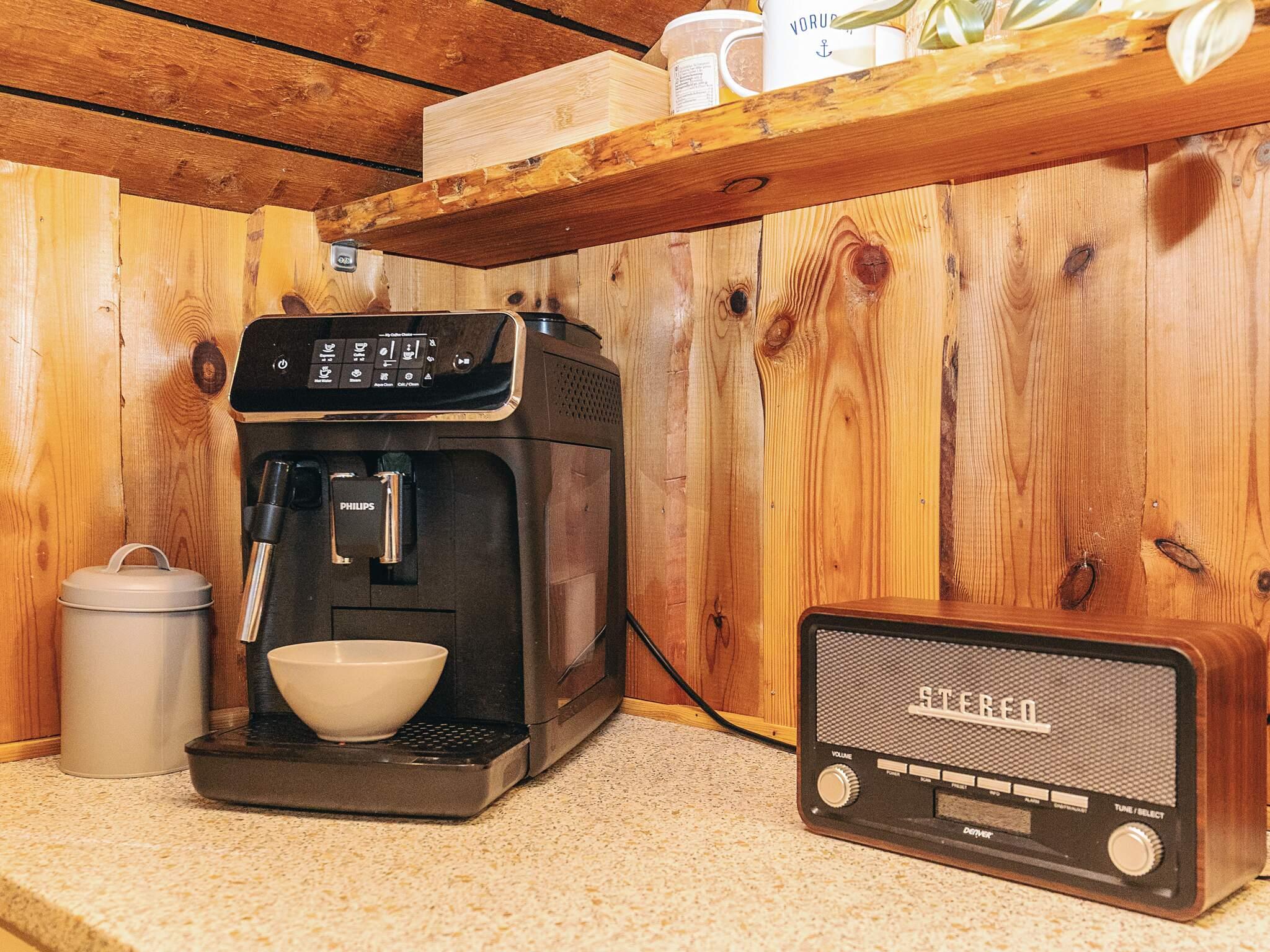 Køkken: El-komfur, køleskab m/frostboks, mikroovn, kaffemaskine