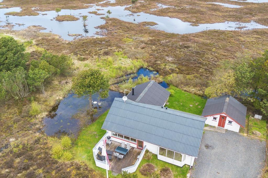 Sommerhusets store naturgrund er en skøn og ugeneret oase, og det er fristende at rykke driverlivet ud i det fri, så snart solen viser sig på himlen. Derudover ånder alt fred og ro på den lille lukkede grusvej, så omgivelserne er med andre ord perfekte, hvis du trænger til at sænke skuldrene helt og samle ny energi. Vil du slappe af i solen, er den sydvendte terrasse det oplagte valg, mens træterrassen på den anden side af huset er den, der vinder prisen for den mest betagende udsigt: Herfra kan du fra første række nyde panoramavuet over den uspolerede natur.