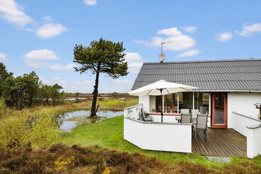 Alle naturelskere vil sikkert blive betagede af det landskab, der venter lige udenfor vinduerne på Julianehåb 29 i Kongsmark. Dette hyggelige sommerhus ligger nemlig lige ud til et stort, fredet areal med klithede og moser, så du har udsigt til åbne vidder og høj himmel, når du slapper af i sofaen eller soler dig på terrassen.